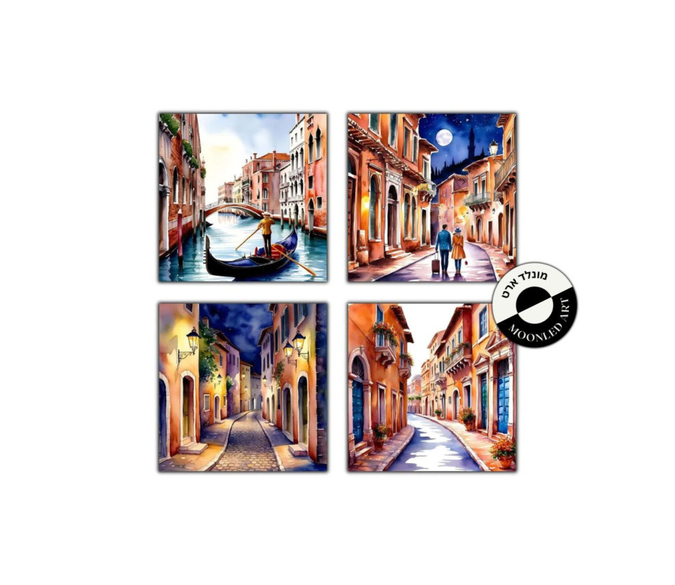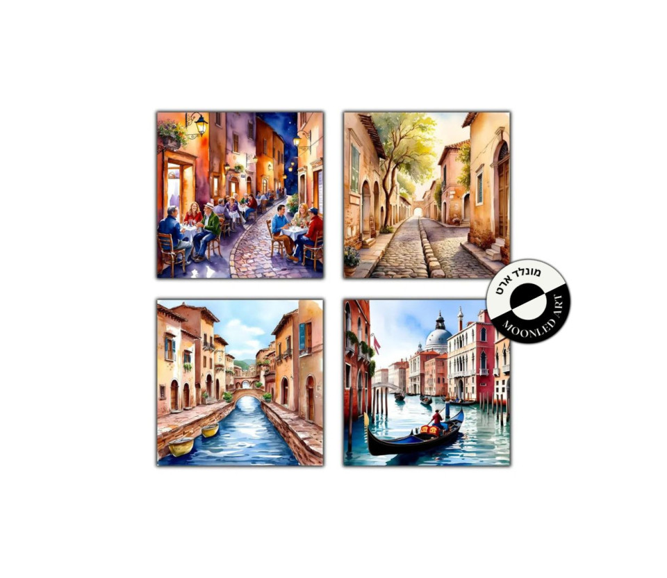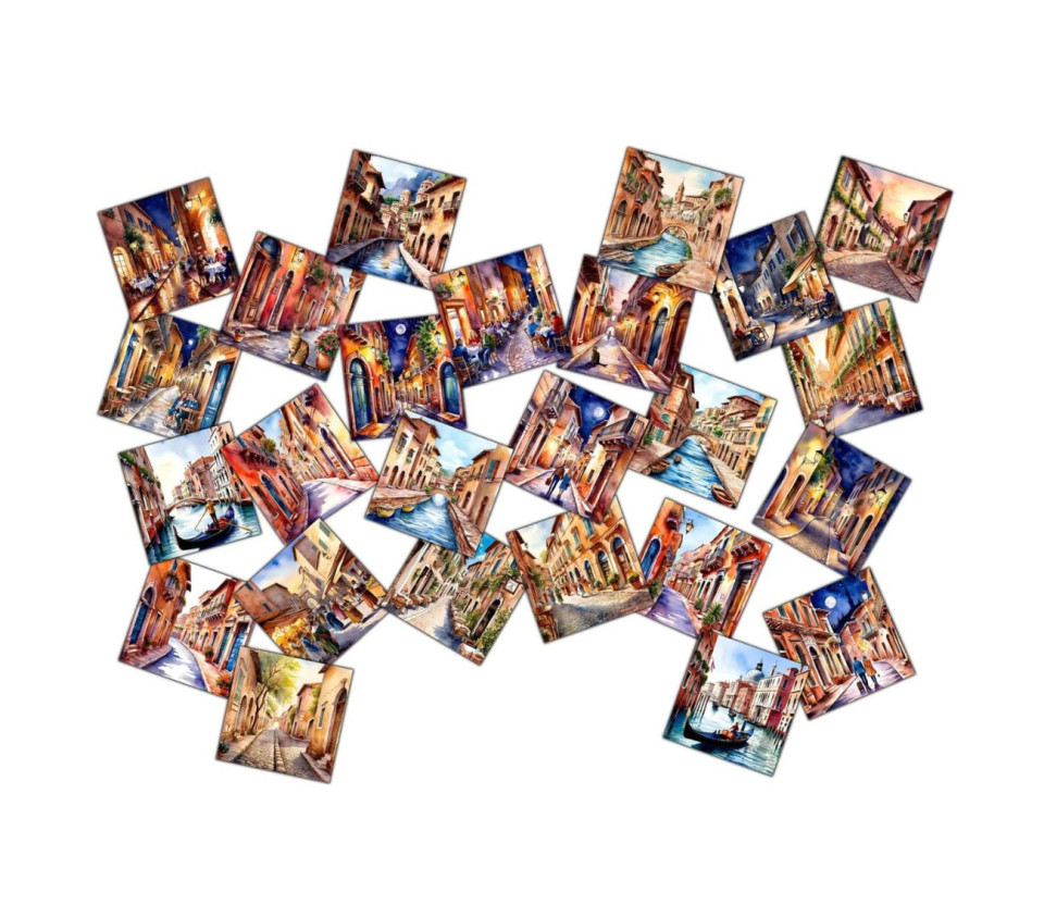 סט 25 מגנטים רחובות עתיקים יפים סגנון ציור מים - עם למינציה קשיחה