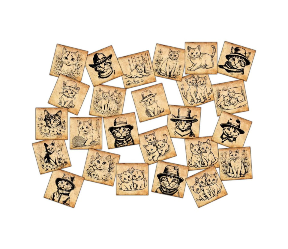 סט 25 מגנטים חתולים סגנון וינטג' - עם למינציה קשיחה