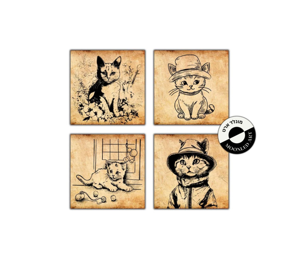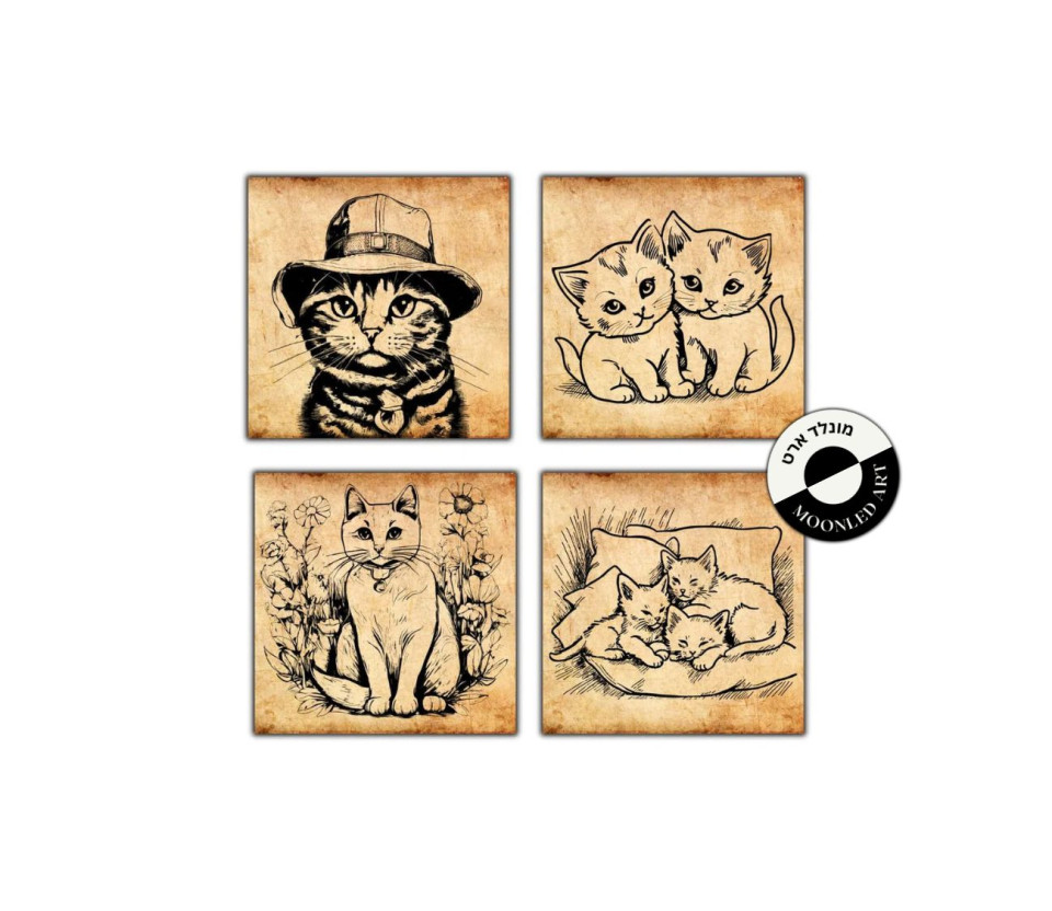 אהבה לחתולים פוגשת קסם נוסטלגי! עם איורים קלאסיים וגוונים רכים שמכניסים חמימות ואופי לכל חלל.