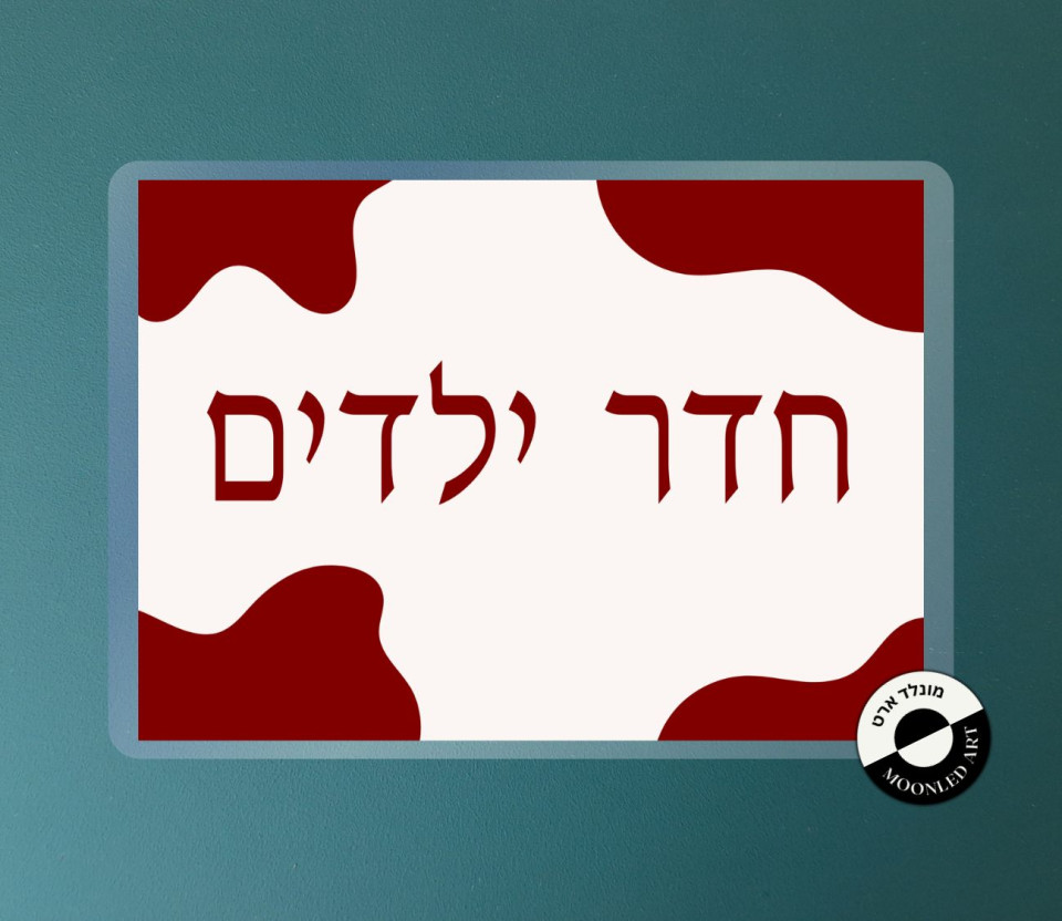 שלט למינציה חדר ילדים - דגם אבסטרקט זמין ב 3 צבעים בורדו/כחול/שחור