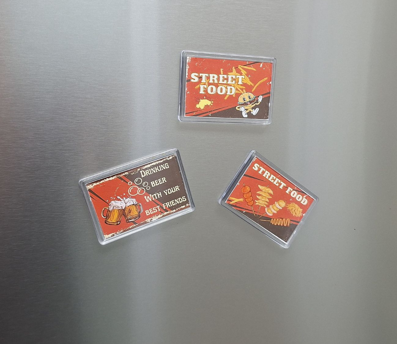 סט מגנטים רטרו למקרר – טעם של אוכל רחוב עם סטייל של פעם!