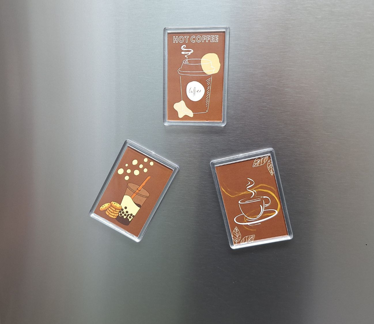 סט 3 מגנטים קשיחים אקריליק פרספקס שיק מודרני, ארומה נצחית לקפה של הבוקר