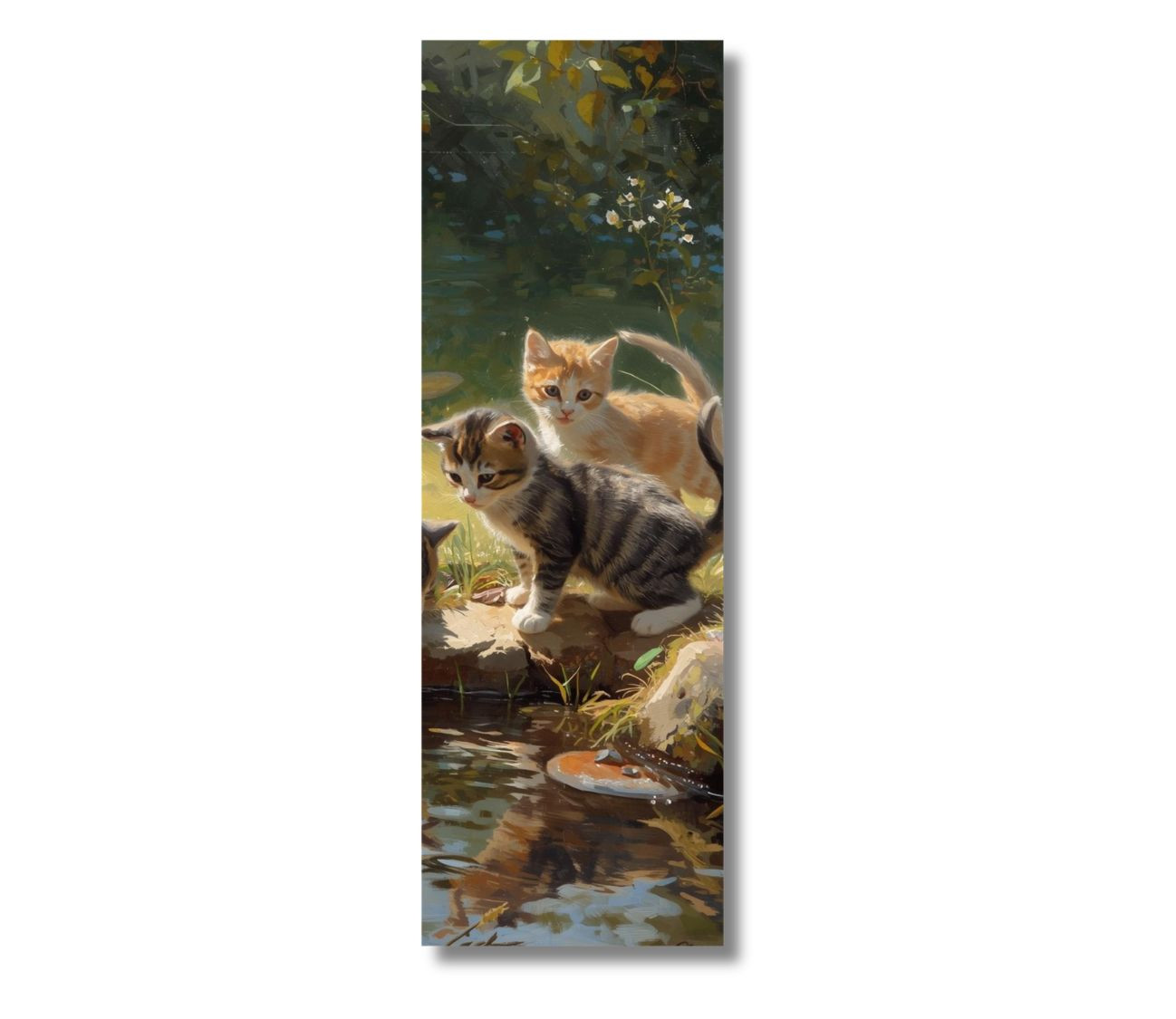 הכניסו רגע של שלווה לכל קריאה עם סימניית חתולים מקסימה בעיצוב פסטורלי של חתולים לצד הנהר.