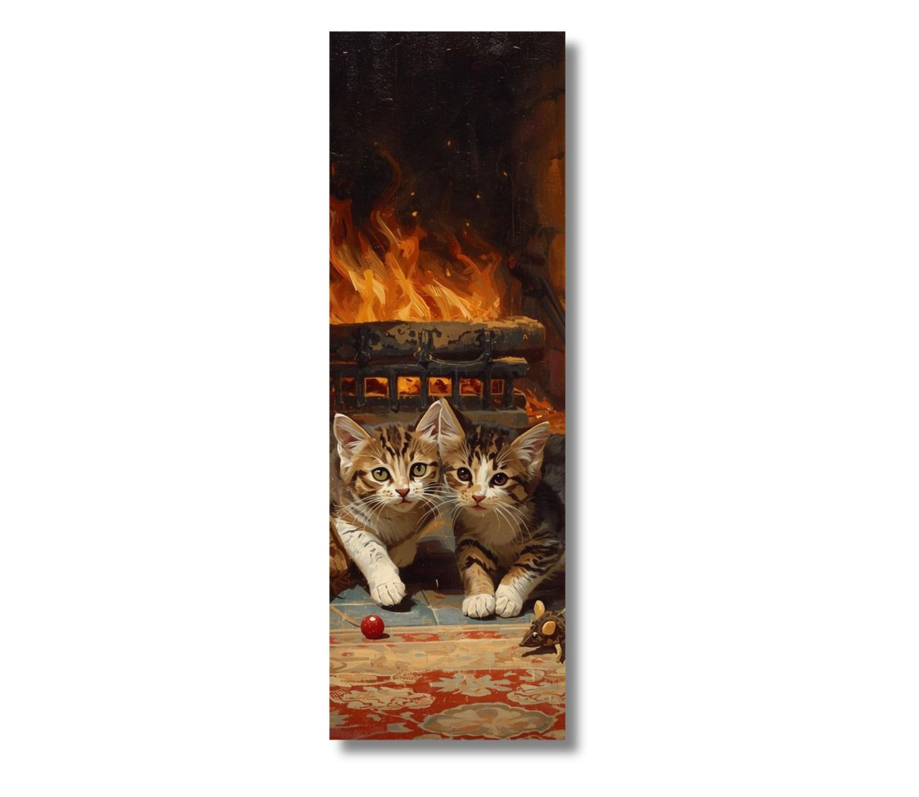 הפכו כל רגע קריאה לחמים ומלא קסם עם סימניה לספר – זוג חתולים מתוקים באווירה חמימה ליד האח.