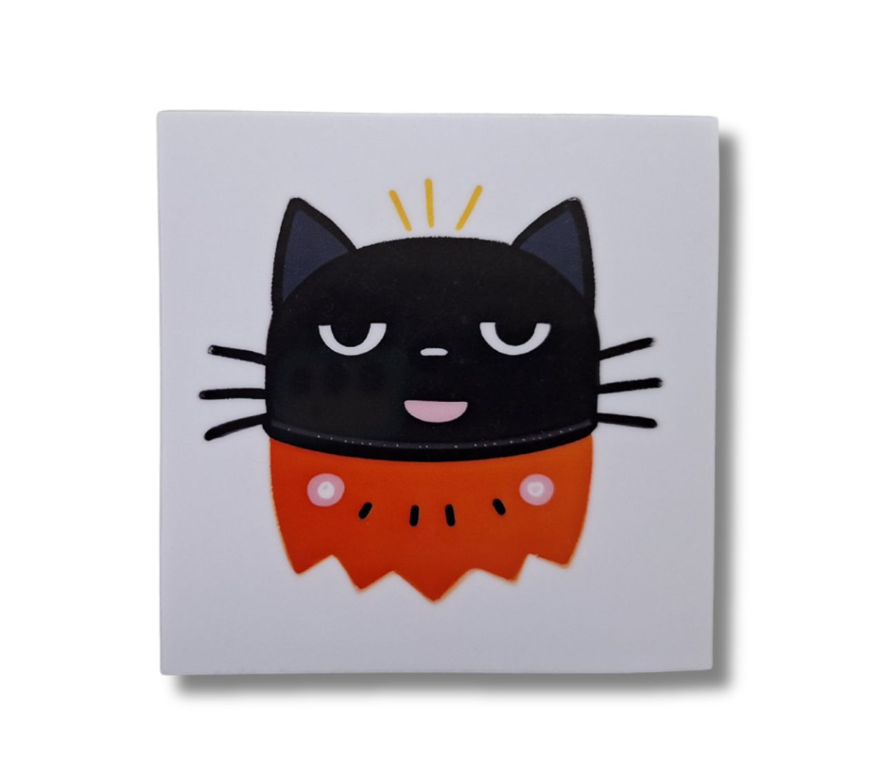 תחתית כוסות - חתול שמח שחור כתום מק"ט - Cat SKU04