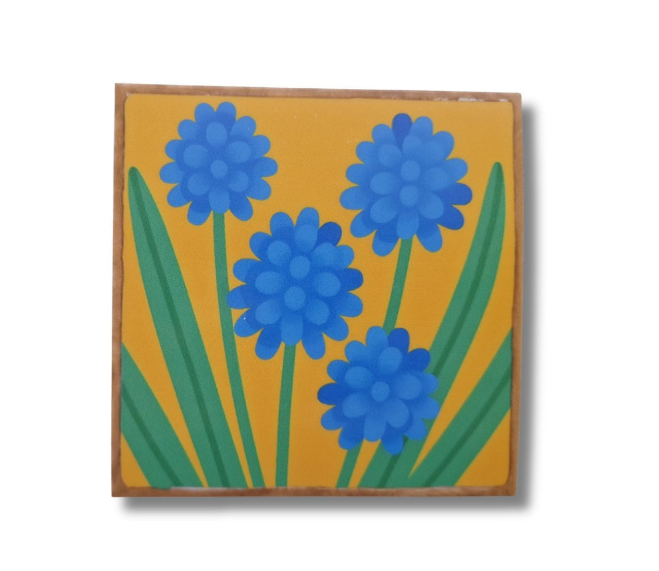 תחתית כוסות - פרחים כחולים נגיעות כחולות לעיצוב שולחן מושלם מק"ט - Flower SKU08