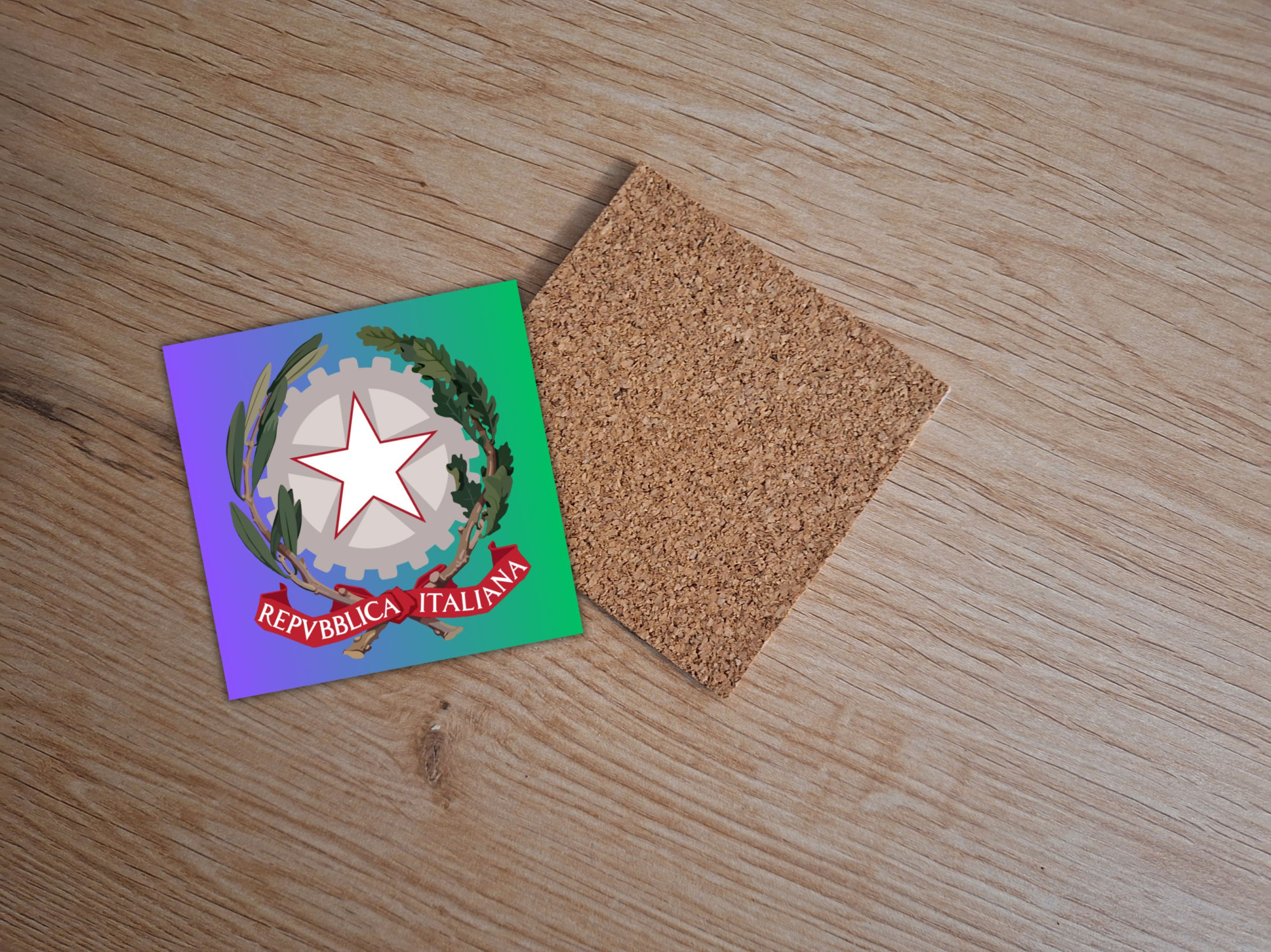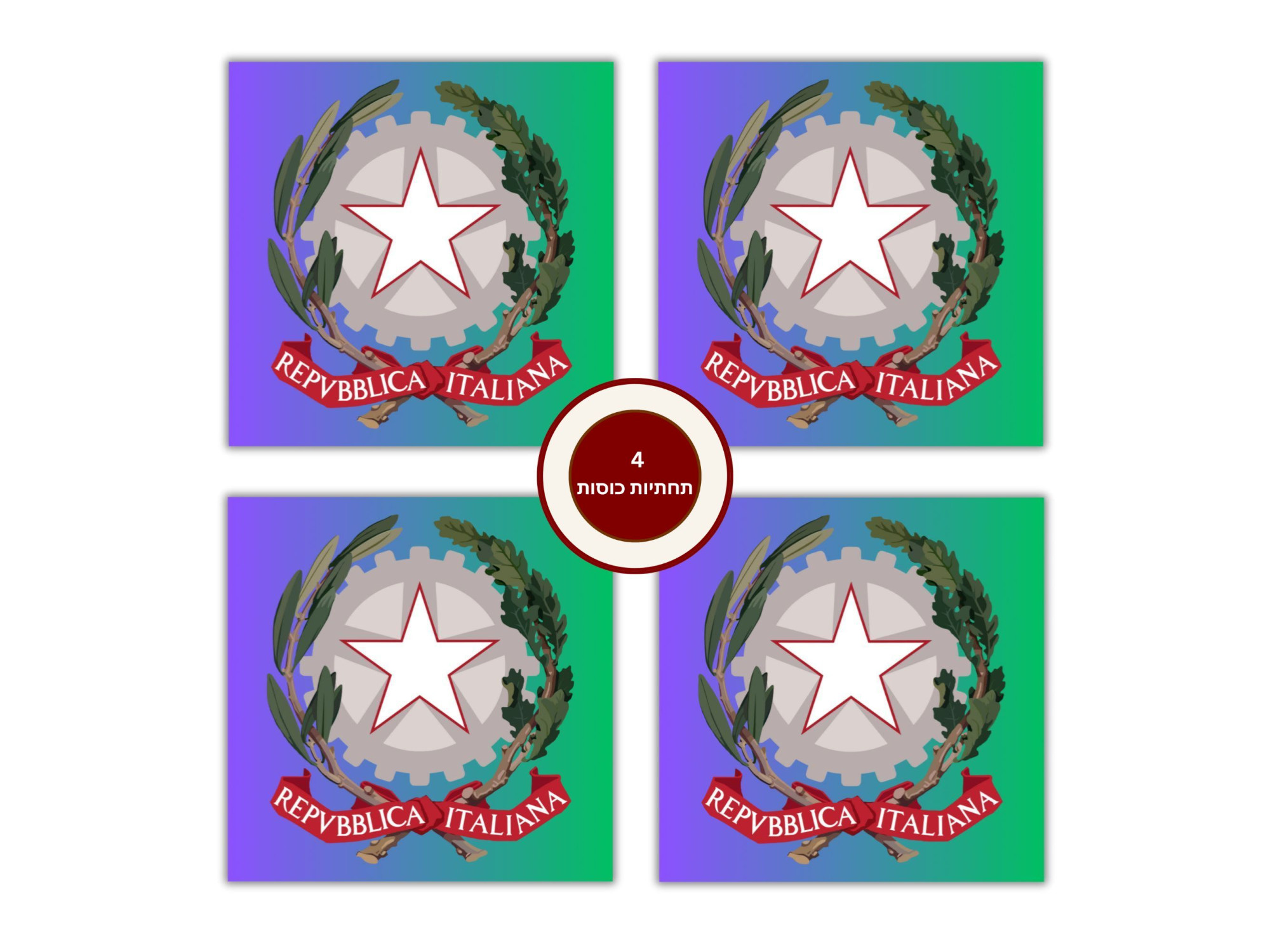 סט ייחודי של 4 תחתיות כוסות עם סמל איטליה, המשלב בין פונקציונליות לעיצוב אלגנטי.