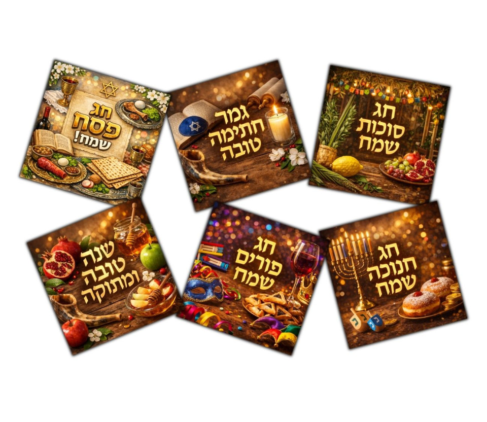 מארז 6 מגנטים חגיגיים ומלאי שמחה לחגי השנה - מתנה מושלמת לחגים