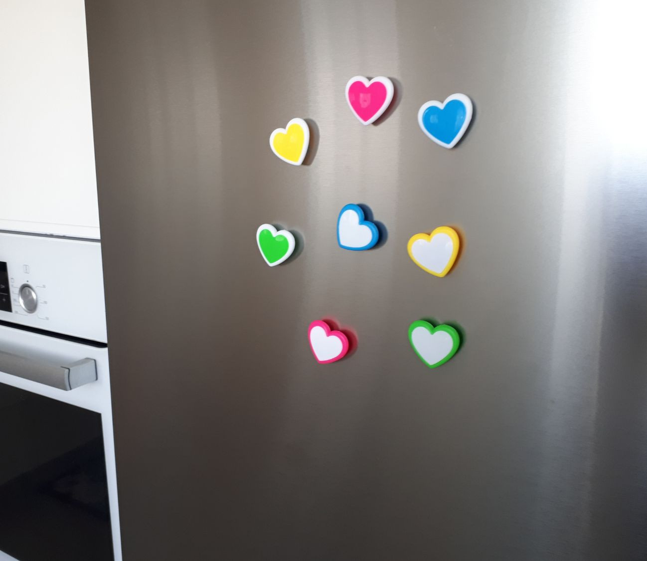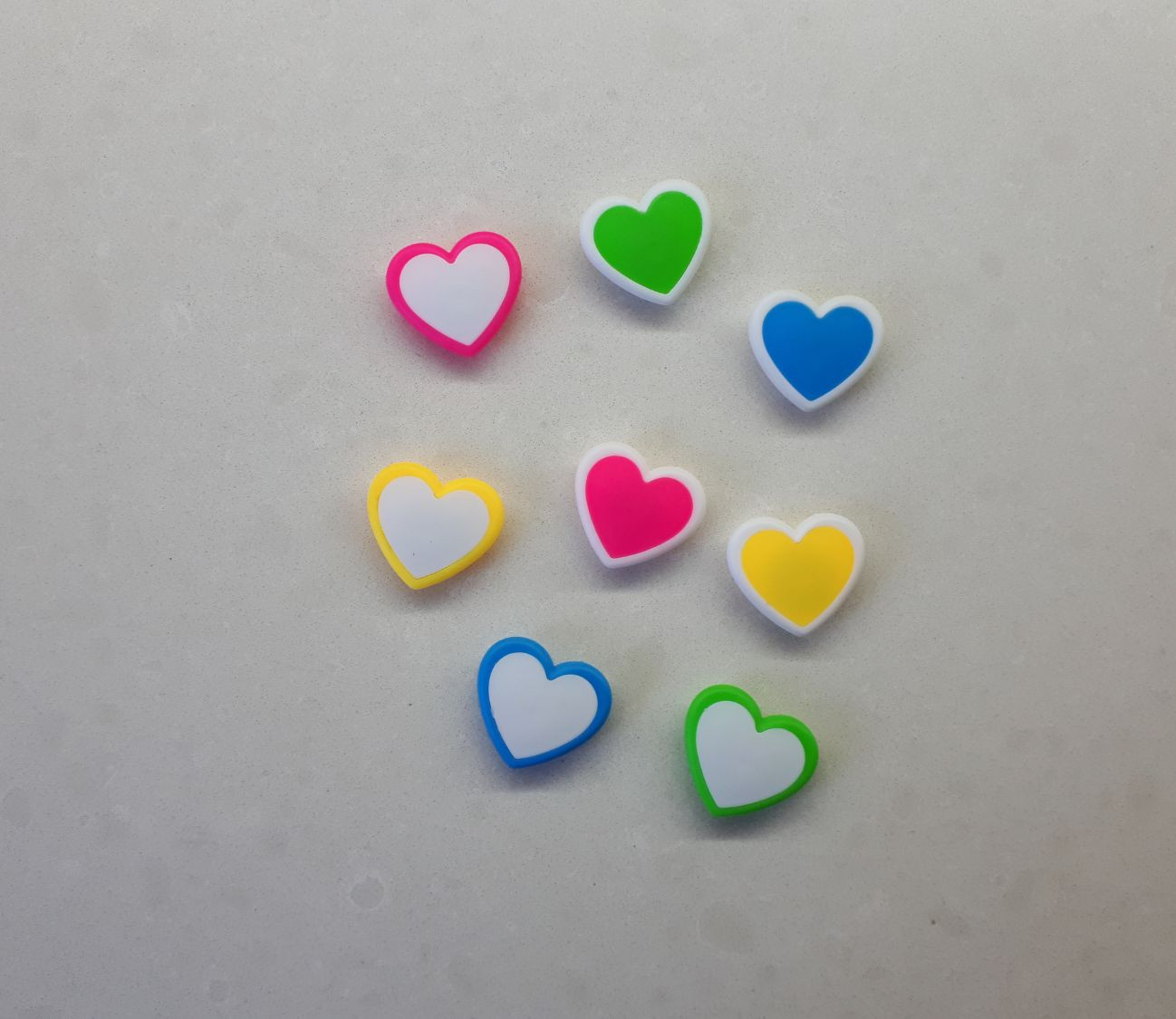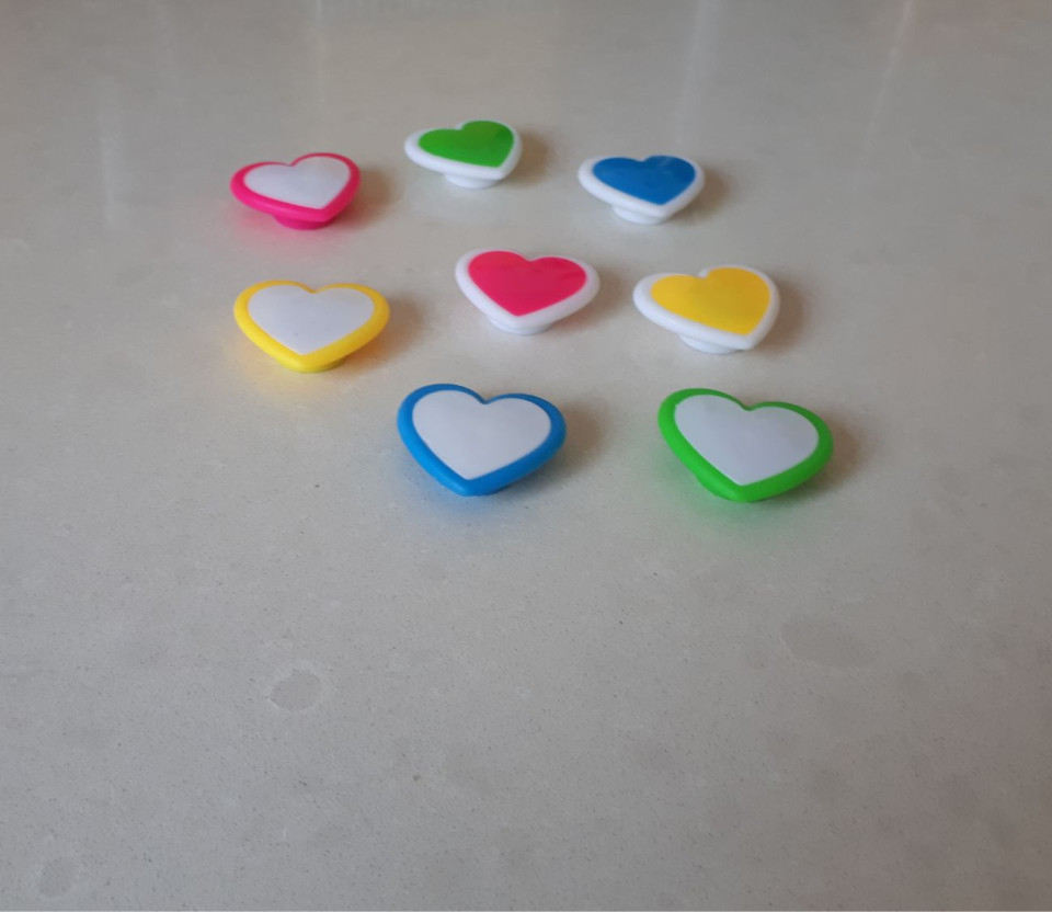 סט 8 מגנטים לבבות צבעוניים.