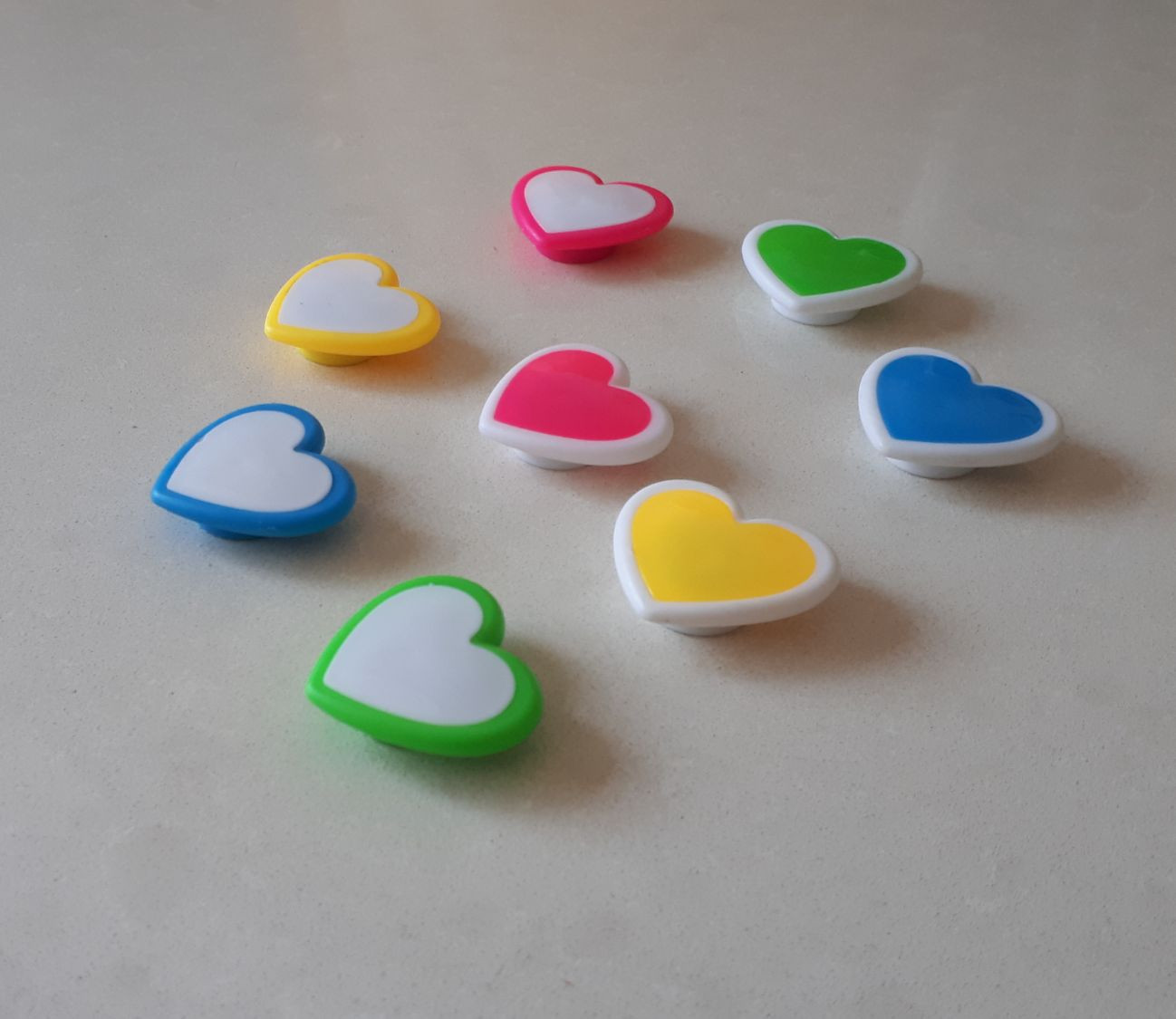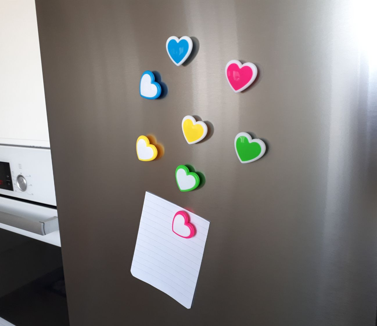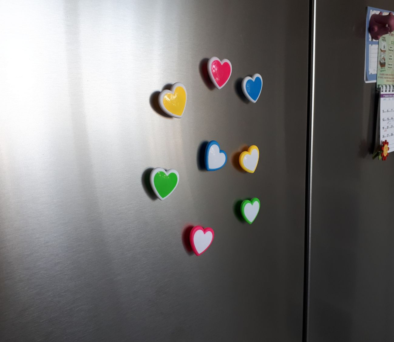 סט 8 מגנטים לבבות צבעוניים.