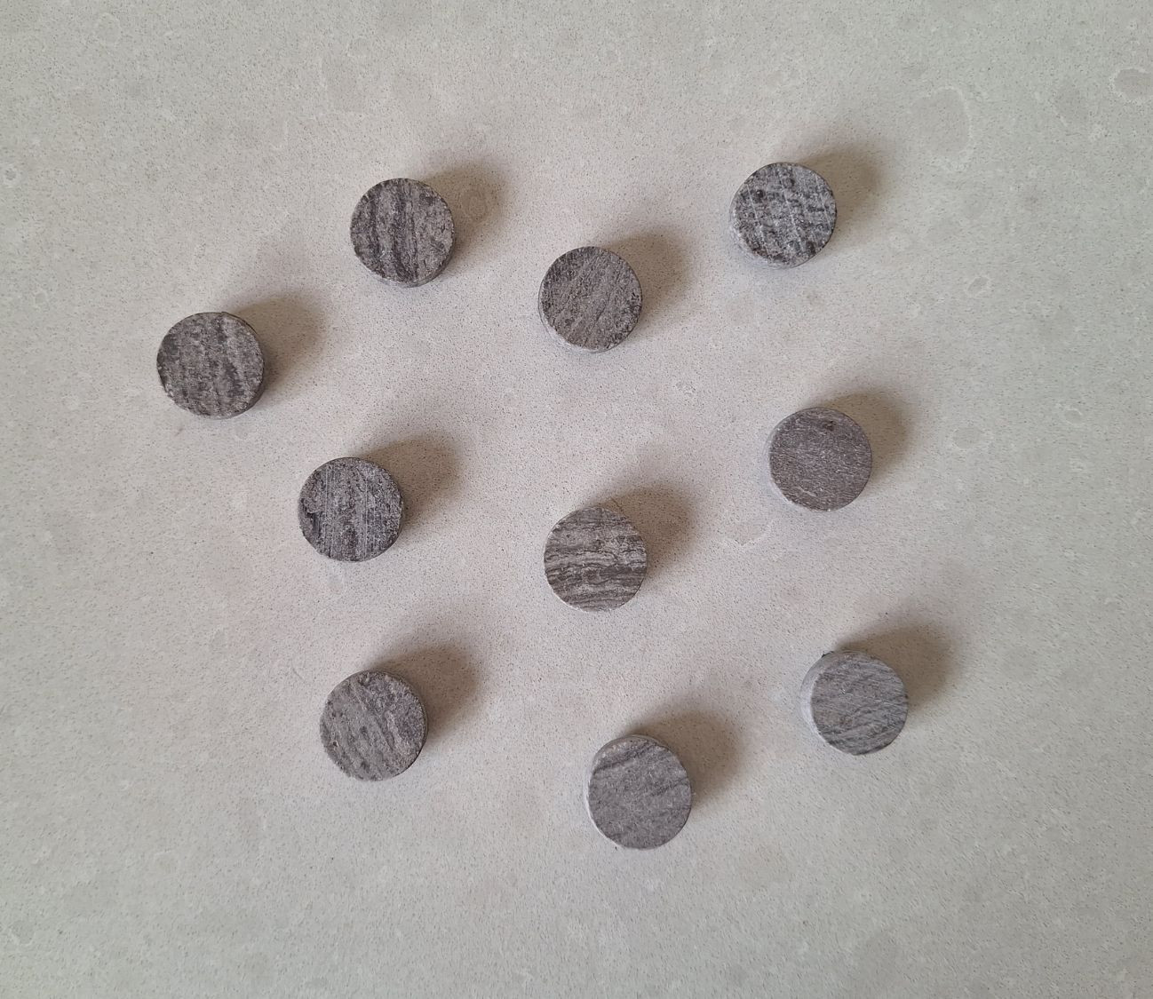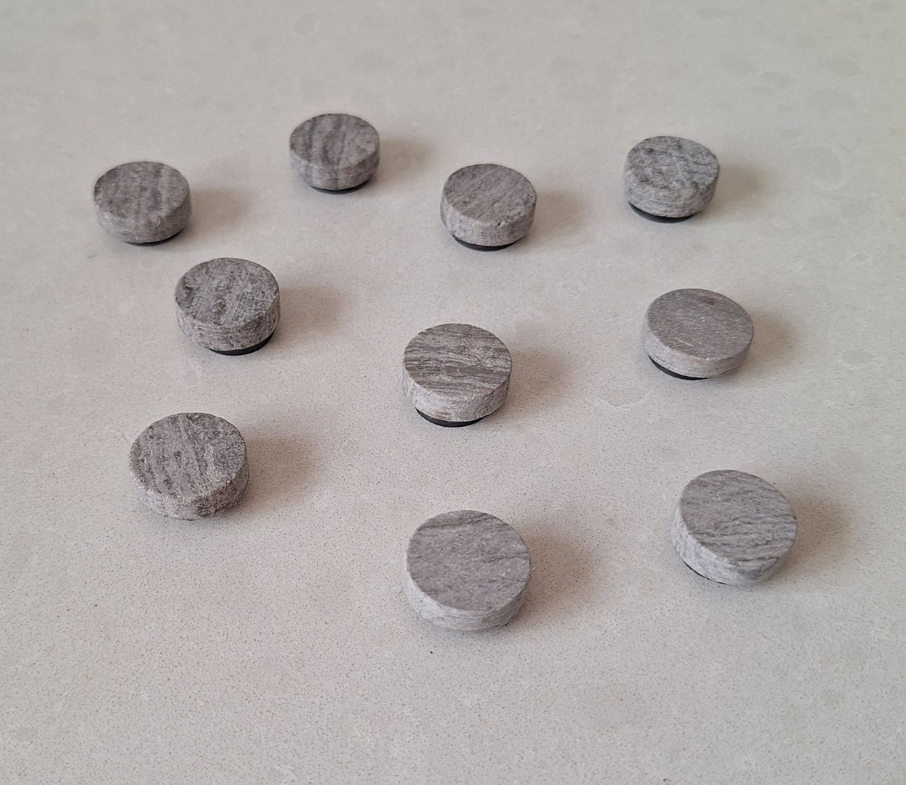 סט 10 מגנטים עגולים אבן שיש גוון אפור.