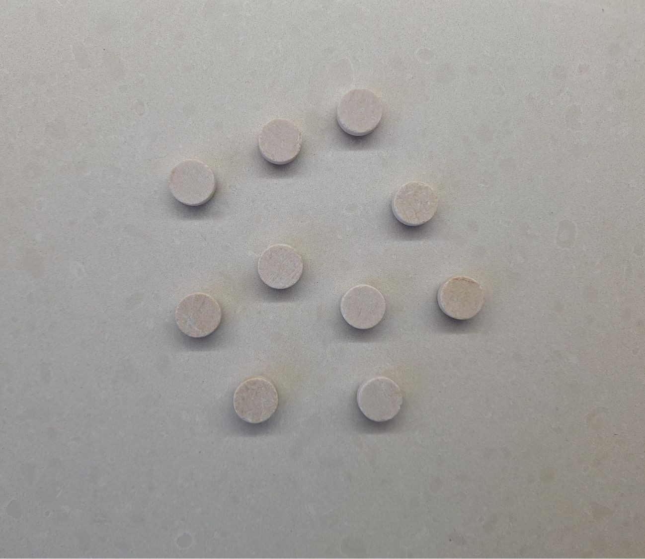 סט 10 מגנטים עגולים אבן שיש גוון לבן.