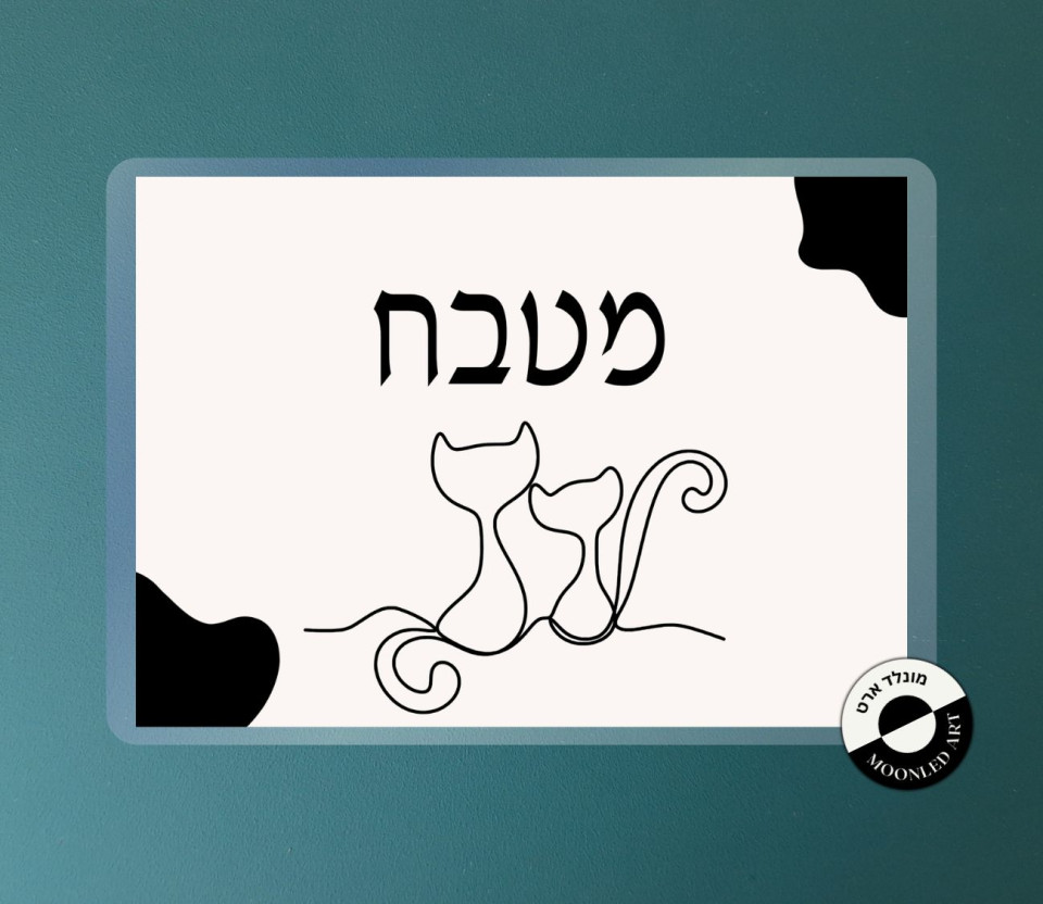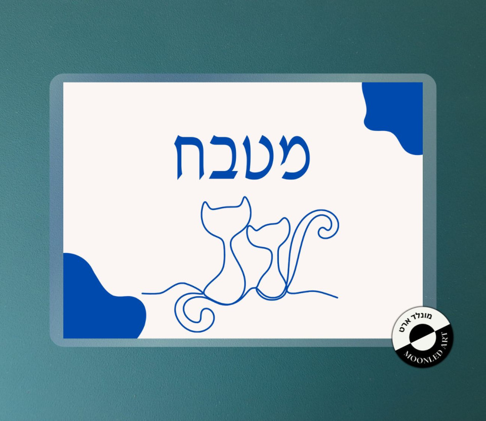 שלט למינציה לדלת דגם חתולים מטבח - זמין ב 3 צבעים בורדו/כחול/שחור