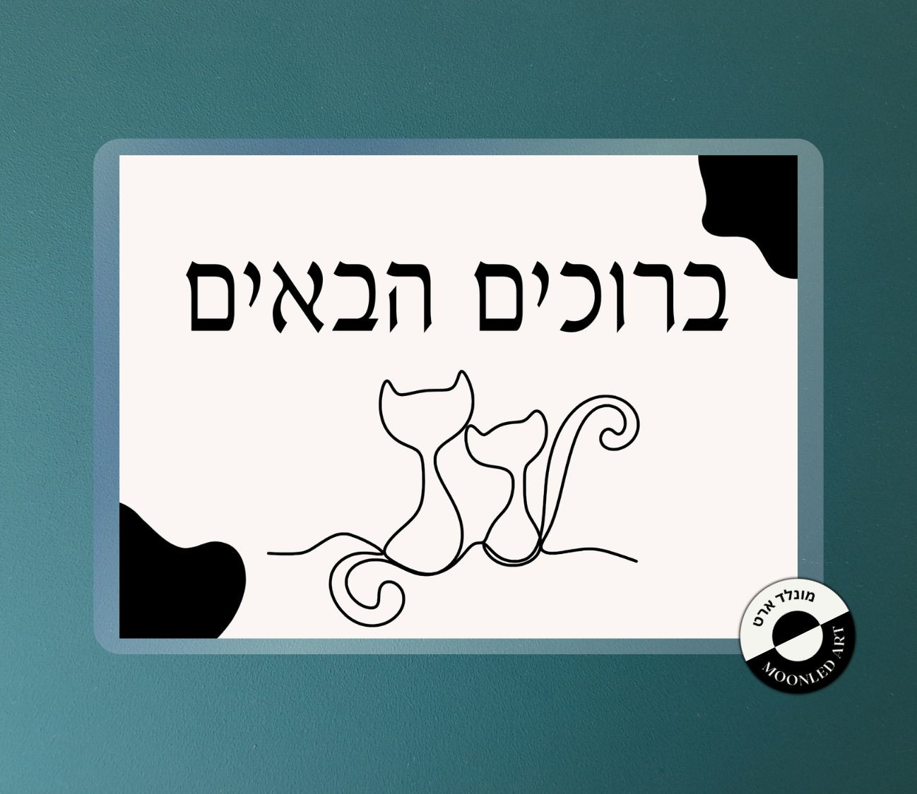 שלט למינציה לדלת דגם חתולים ברוכים הבאים - זמין ב 3 צבעים בורדו/כחול/שחור