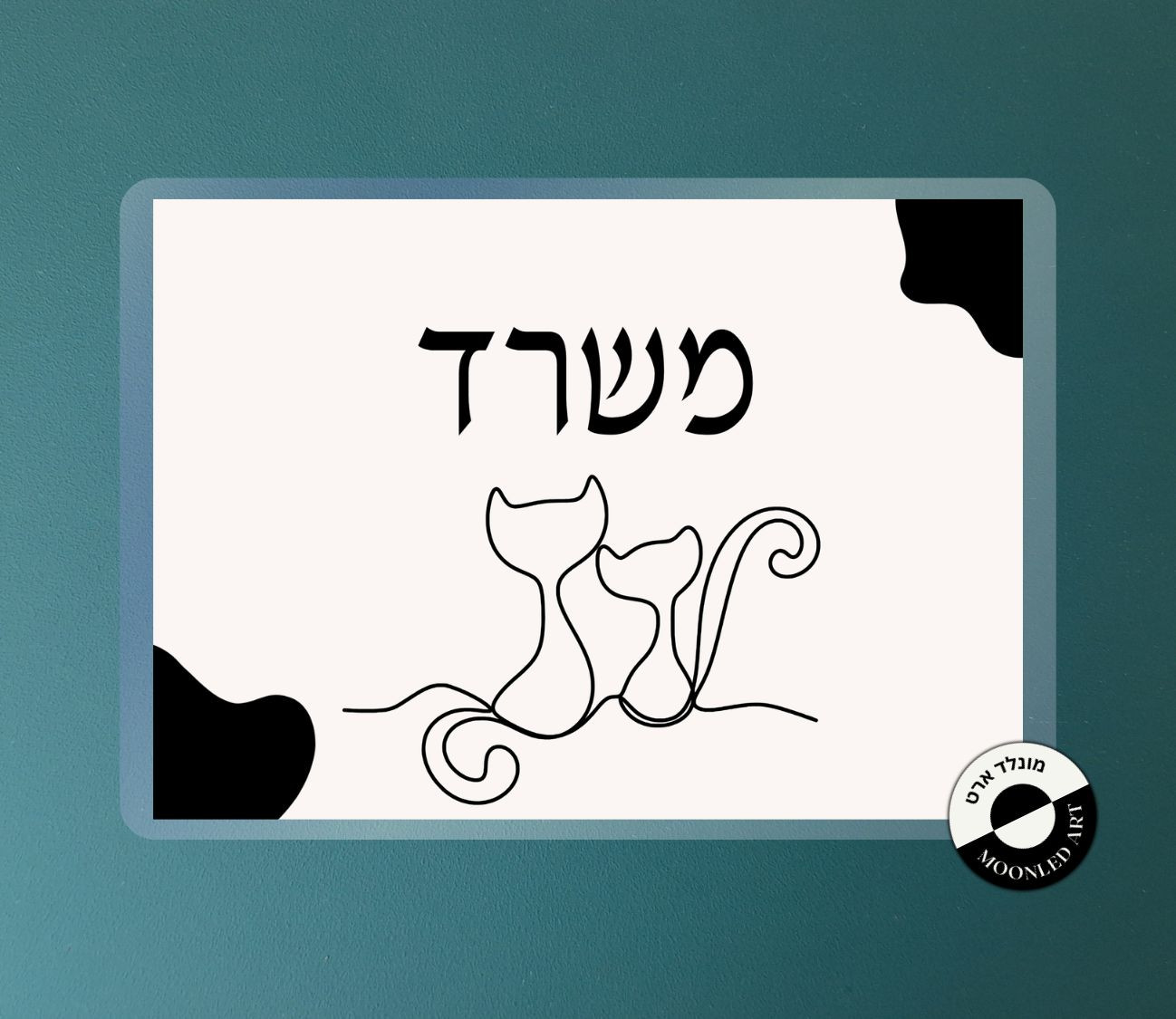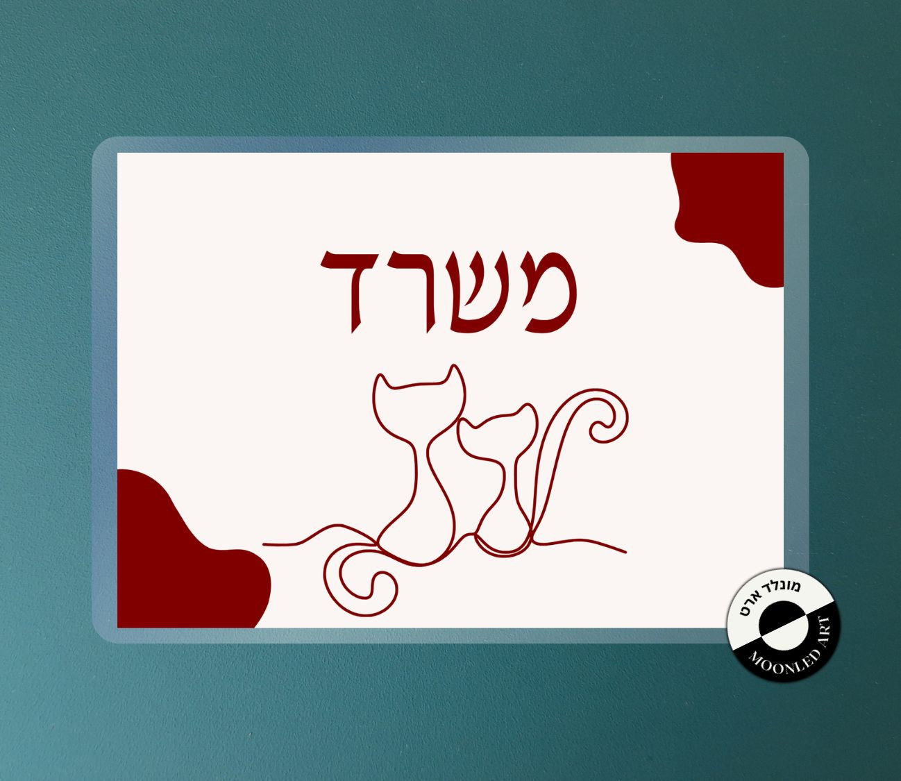 שלט למינציה משרד - דגם חתולים זמין ב 3 צבעים בורדו/כחול/שחור