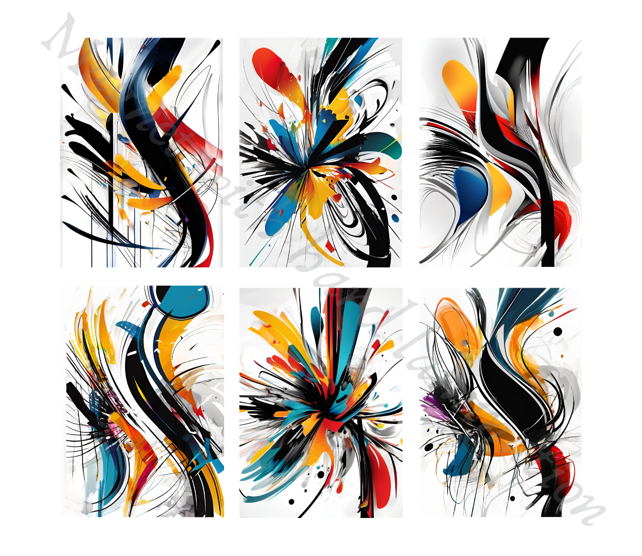 הכניסו צבע, אנרגיה וסטייל למטבח שלכם עם סט 6 מגנטים קשיחים בעיצוב אמנות מודרנית אבסטרקטית!