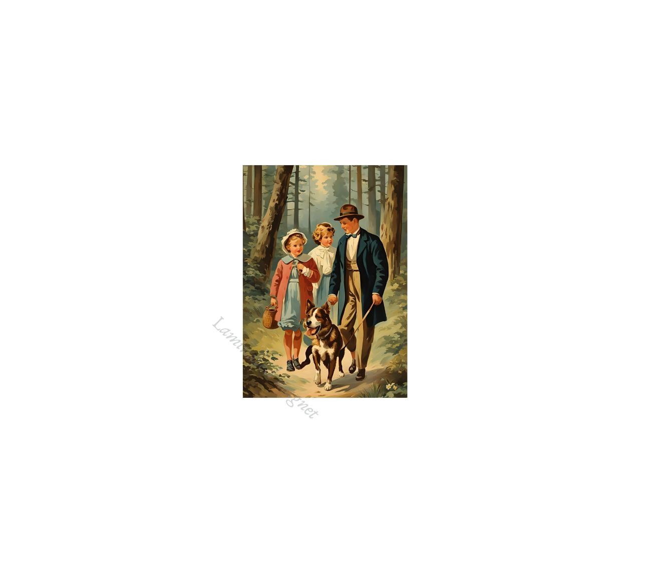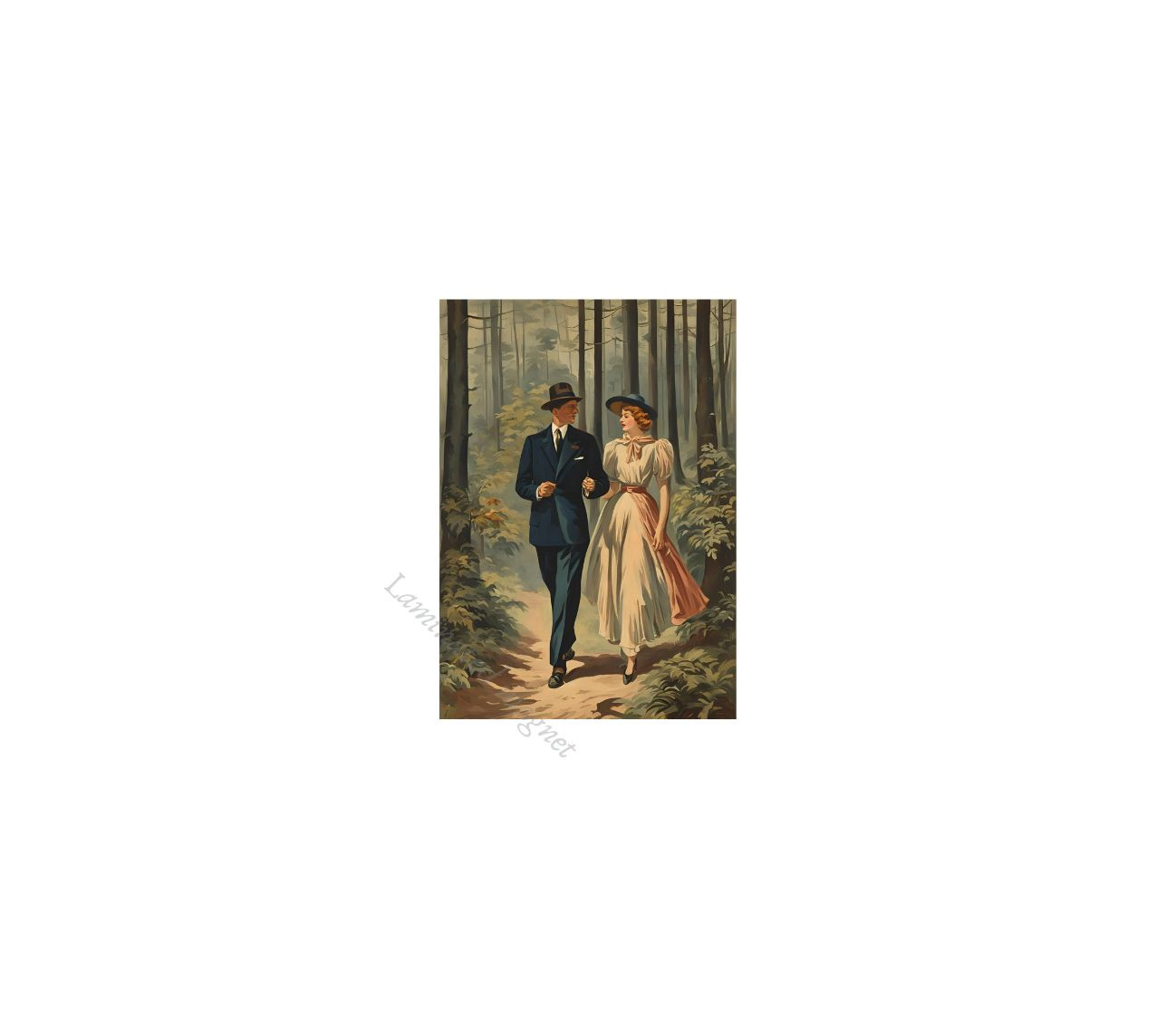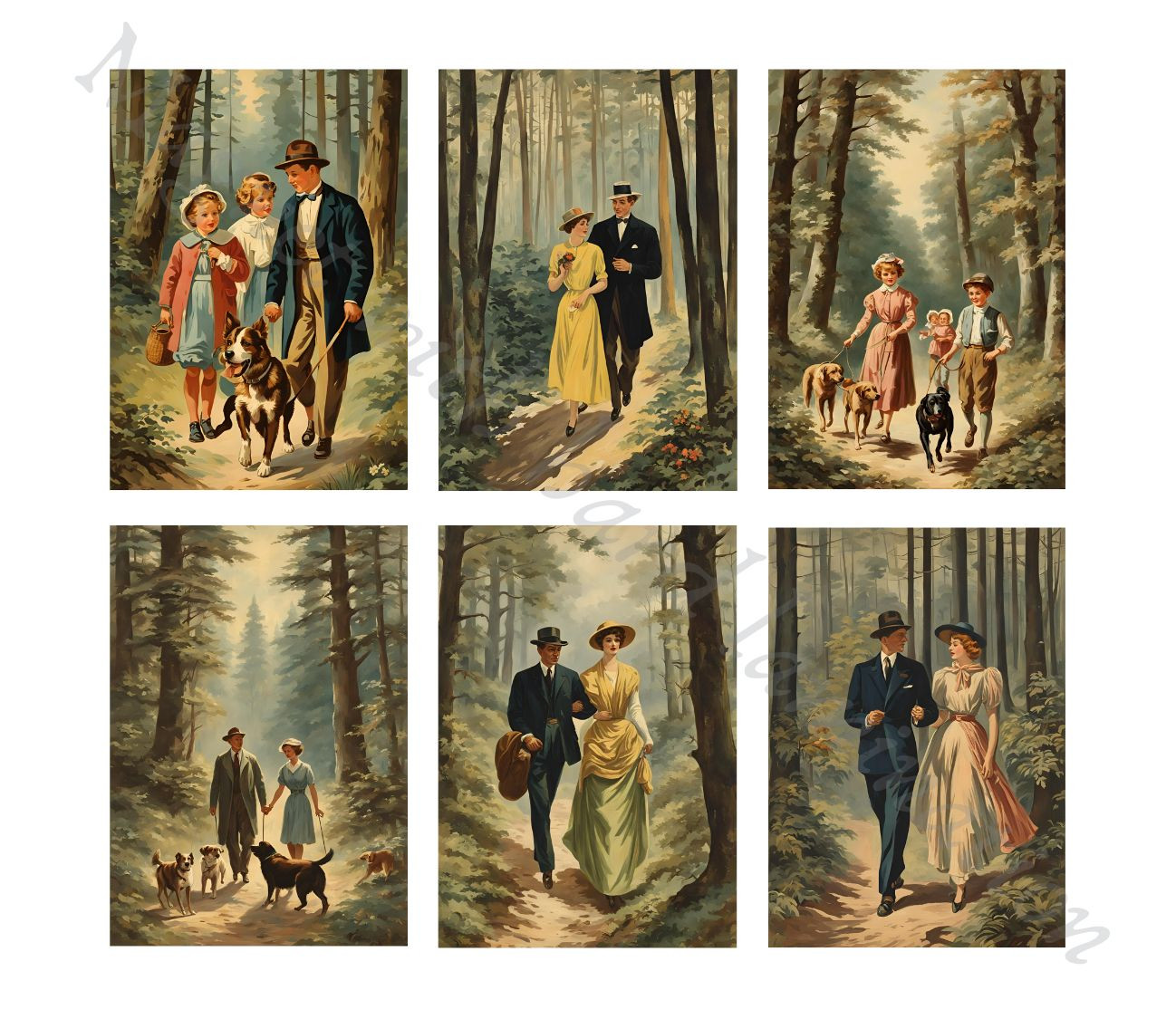 כל מגנט מציג איורים מהפנטים של זוגות, משפחות בטבע עם עצים ושבילים קסומים.