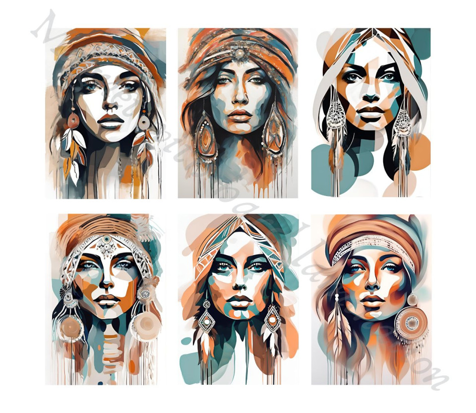 סט 6 מגנטים קשיחים עם למינציה נשים סגנון אמנות בוהו שיק למקרר ולוח מתכת