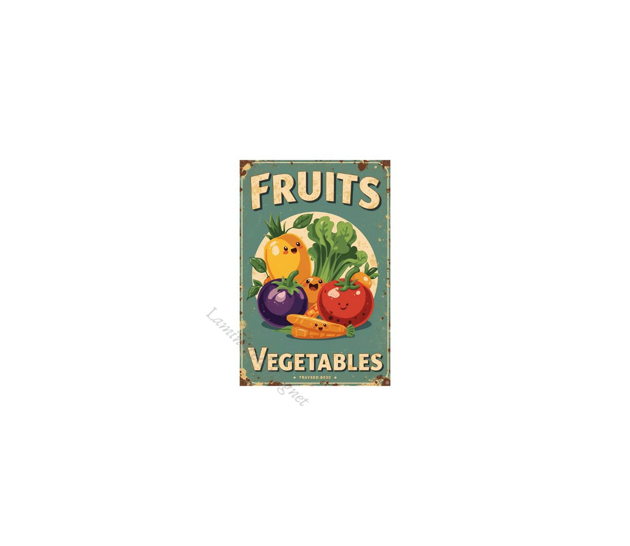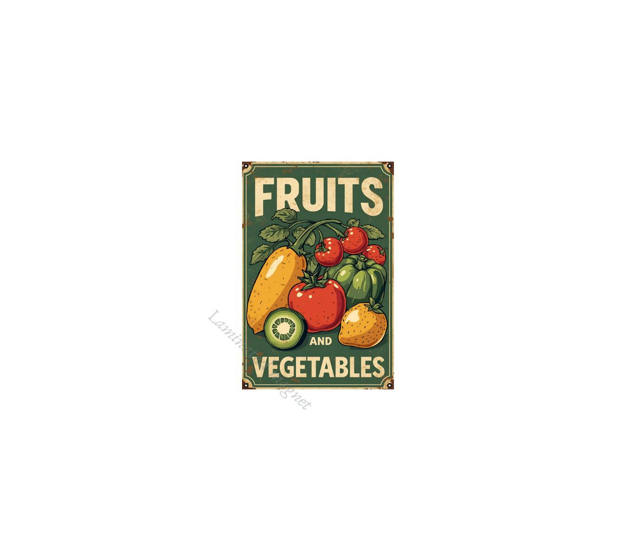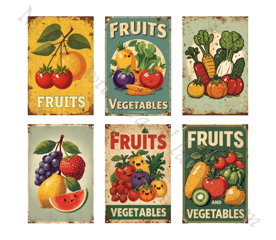 סט 6 מגנטים קשיחים עם למינציה פירות ירקות סגנון רטרו וינטג' למקרר ולוח מתכת מק"ט SKU23