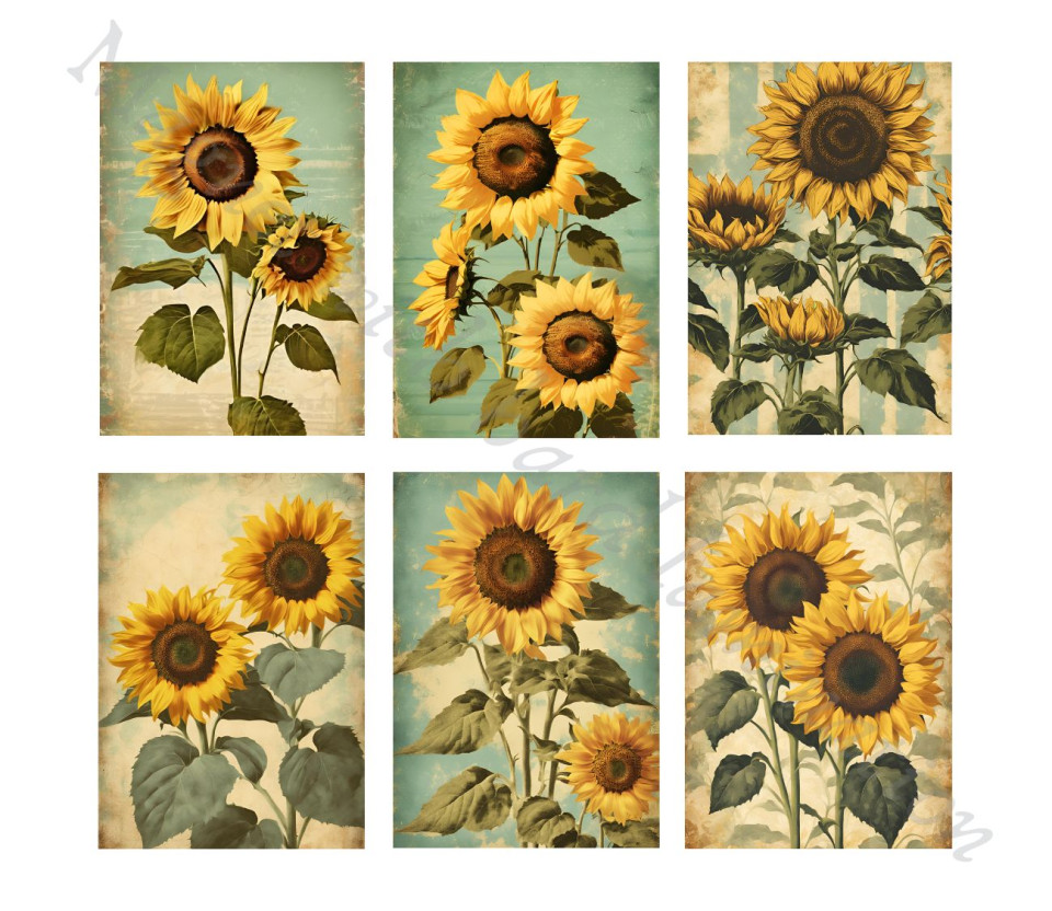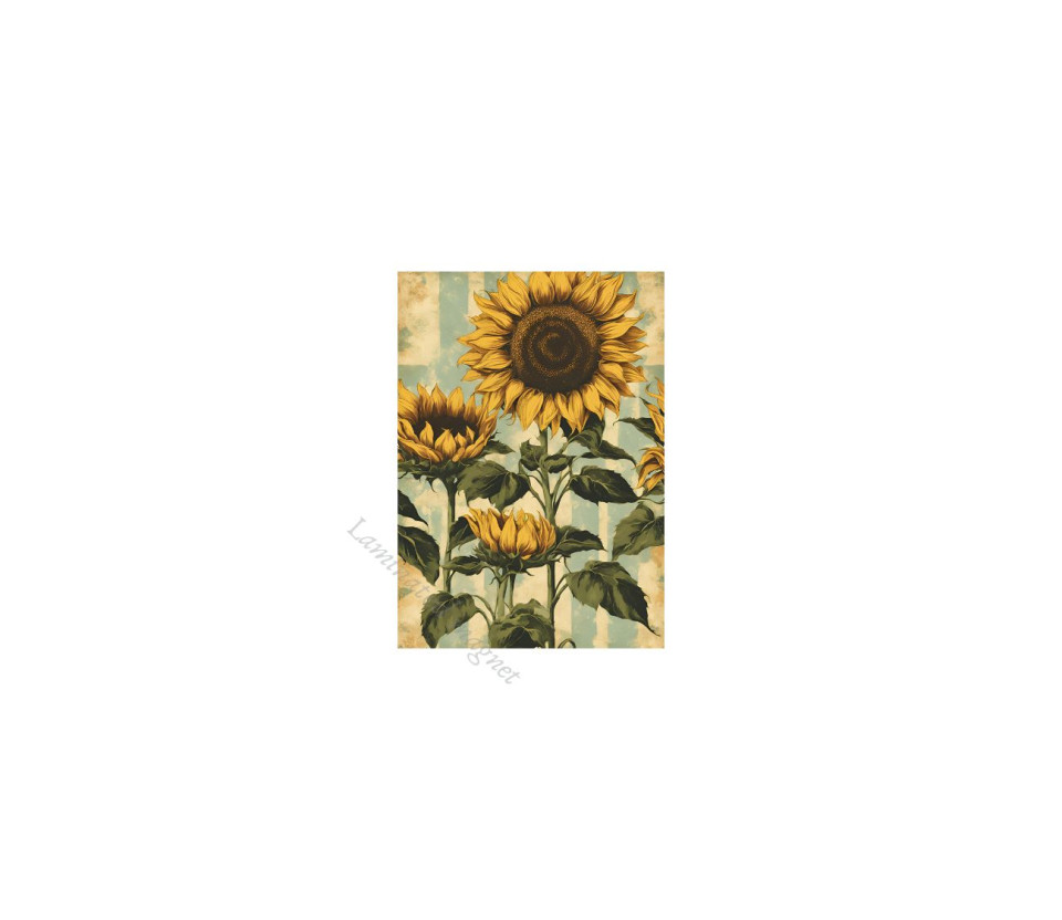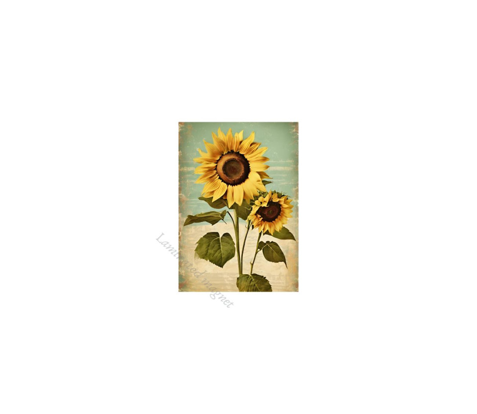 סט 6 מגנטים קשיחים עם למינציה דגם חמניות סגנון וינטג' רטרו למקרר ולוח מתכת