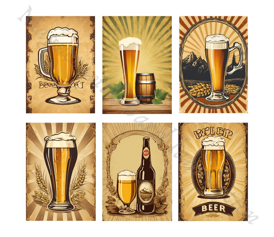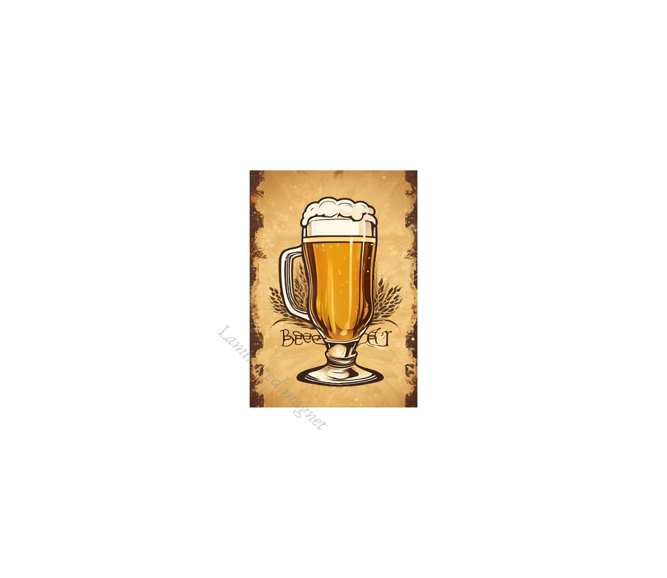 סט 6 מגנטים קשיחים עם למינציה דגם בירה סגנון רטרו למקרר ולוח מתכת