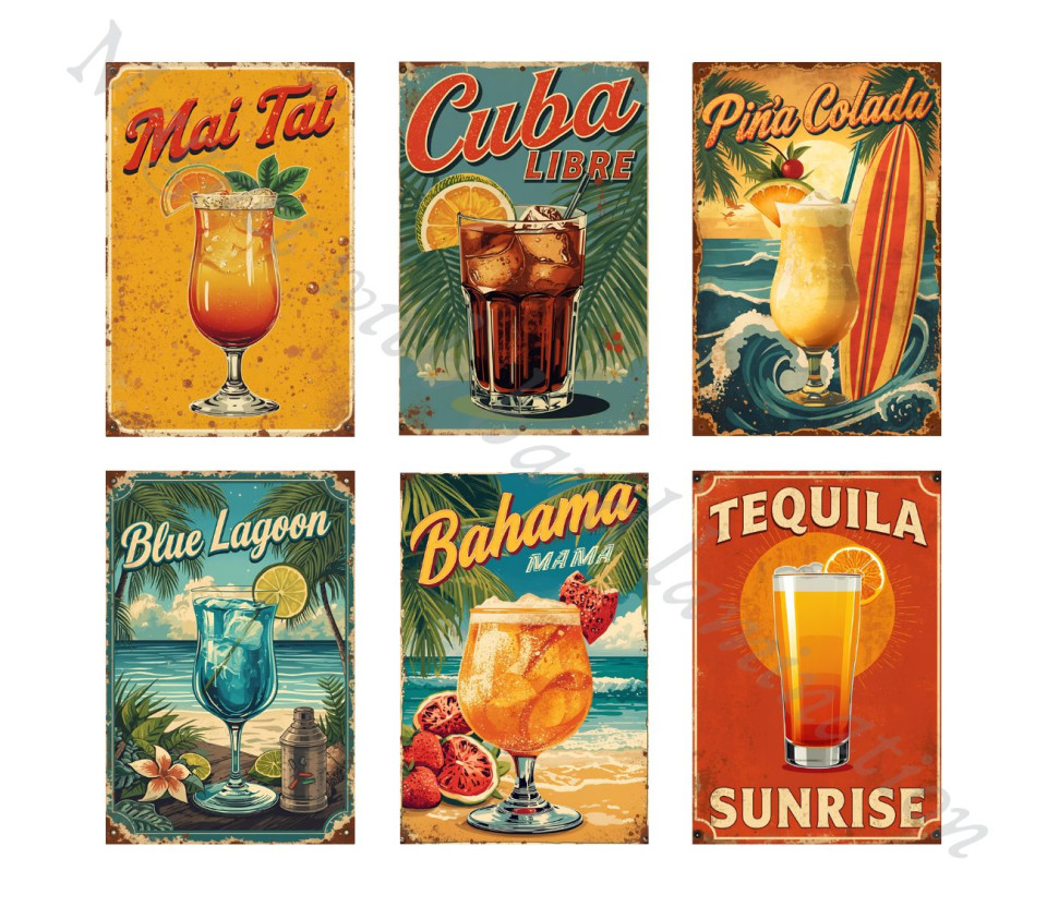 הכניסו אווירת חופשה טרופית וצבעונית ישר אל המטבח שלכם עם סט 6 מגנטים קשיחים עם למינציה בעיצוב קוקטיילים קיציים ומרעננים!