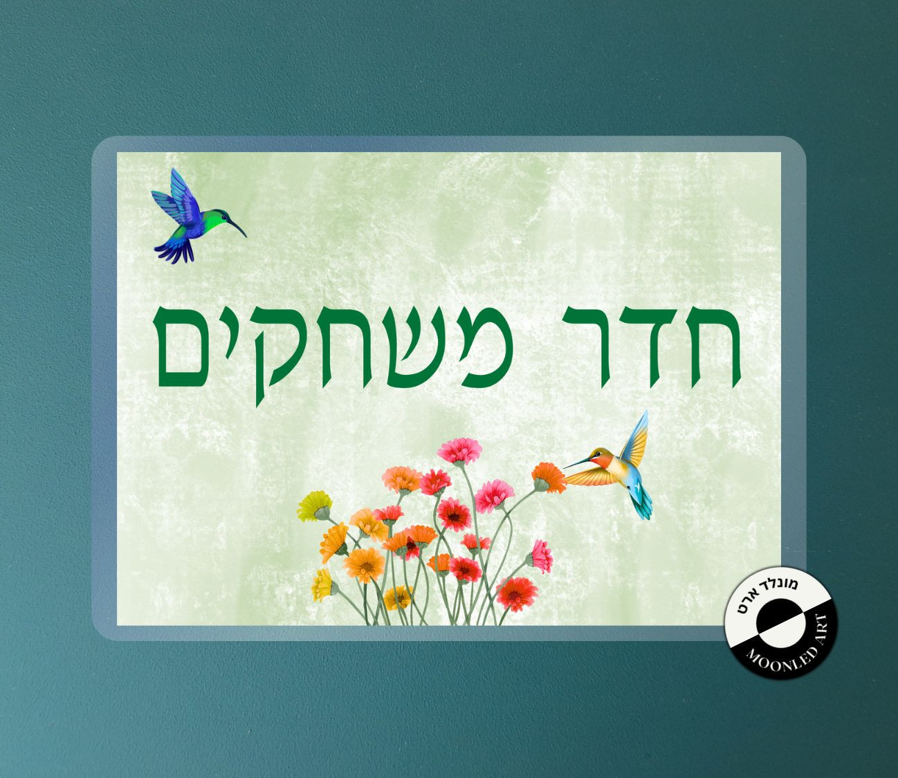 שלט למינציה חדר משחקים - דגם יונקי הדבש
