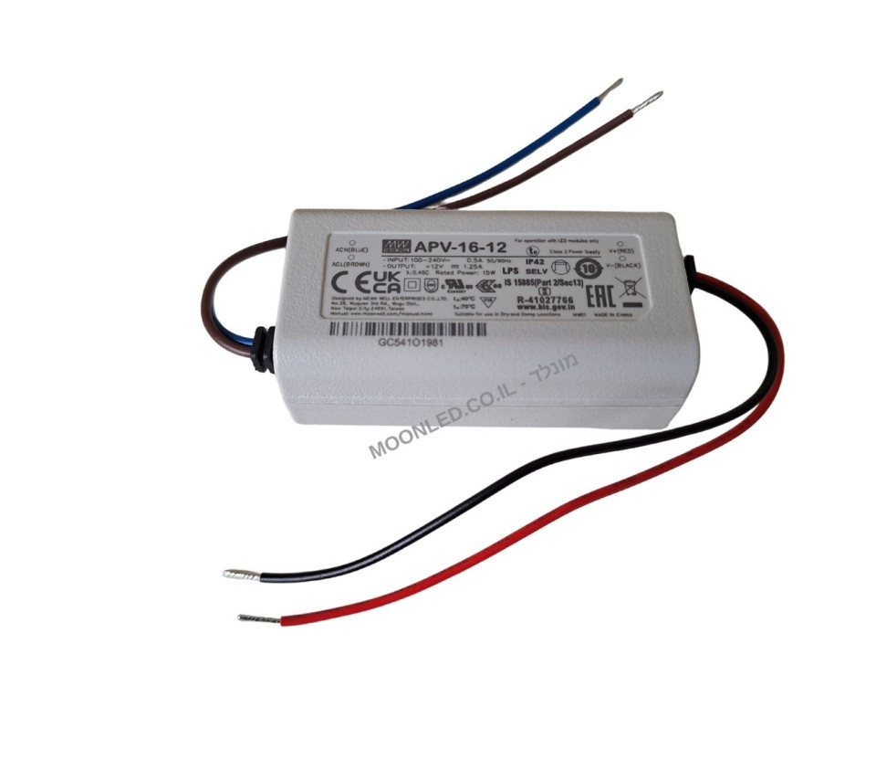 שנאי ספק כוח 15W / 1.25A / 12V - MEAN WELL