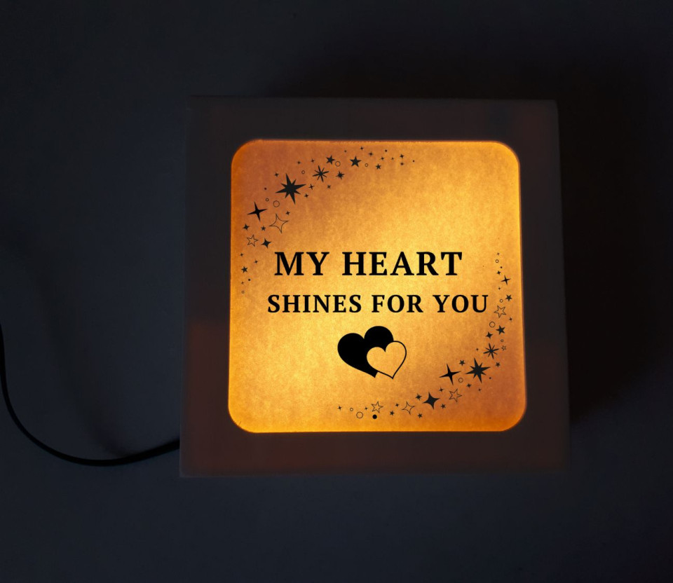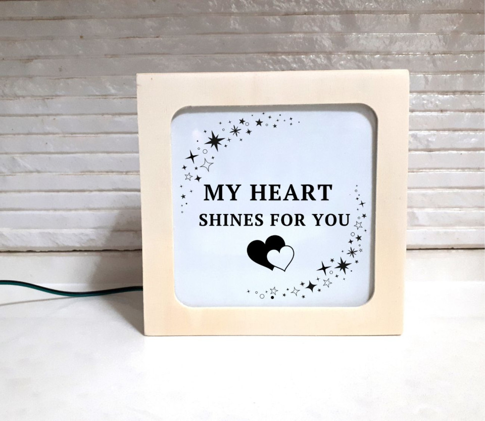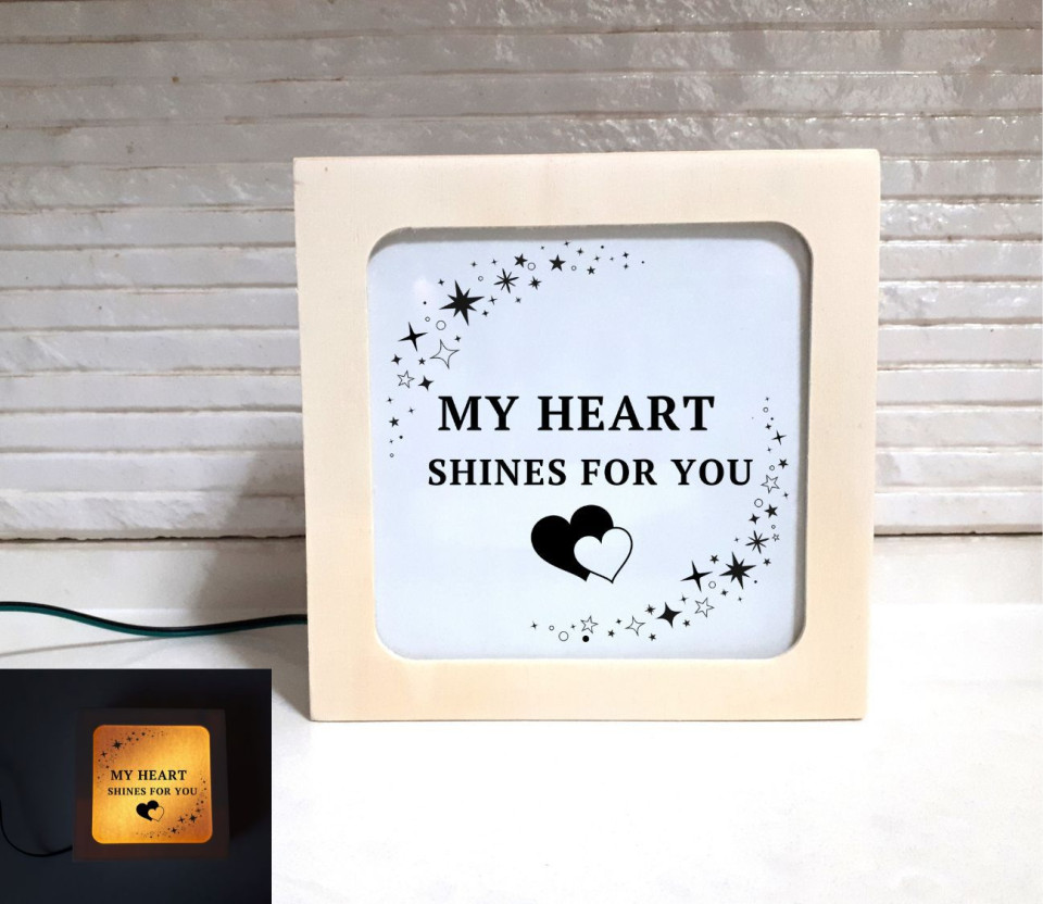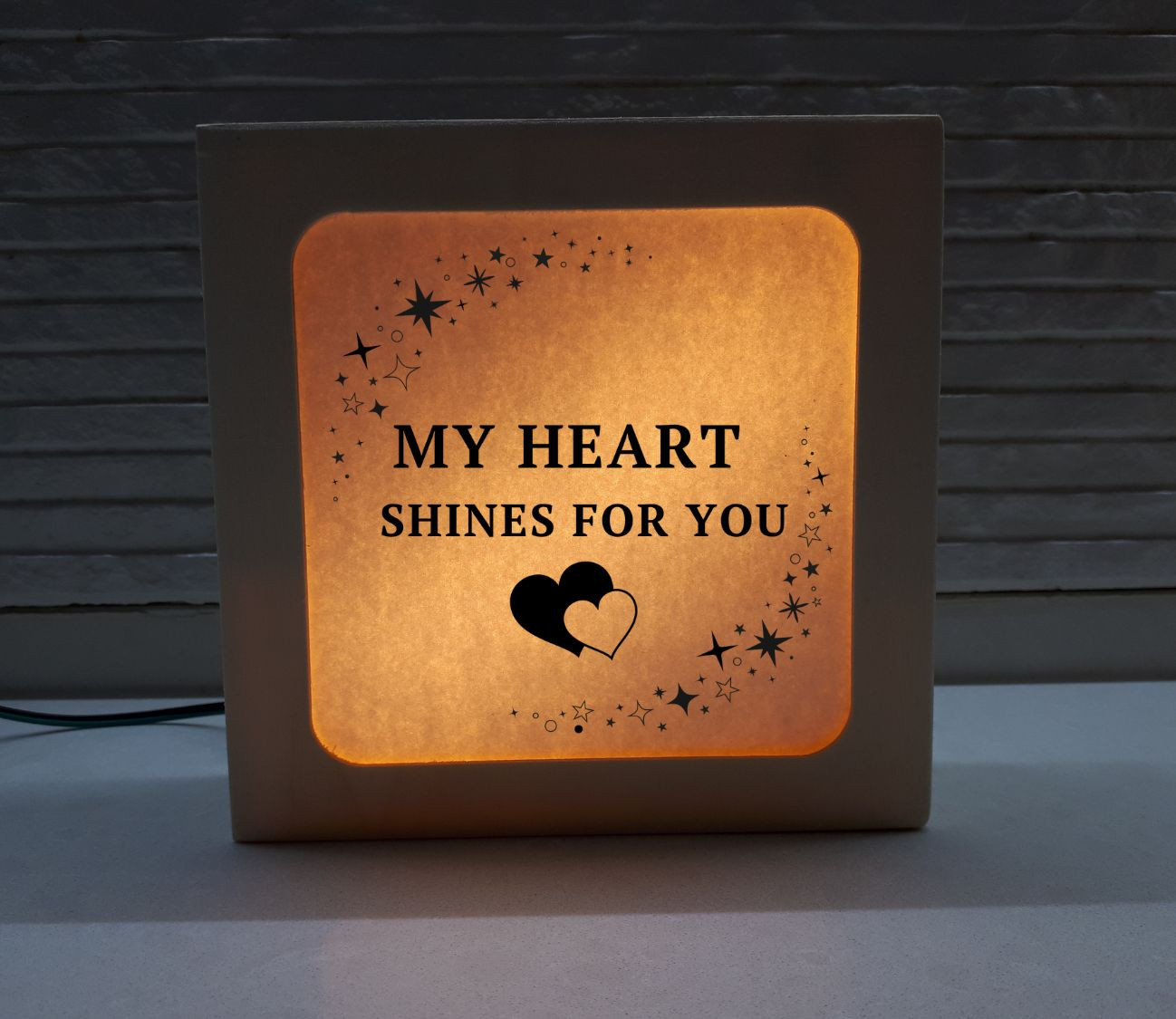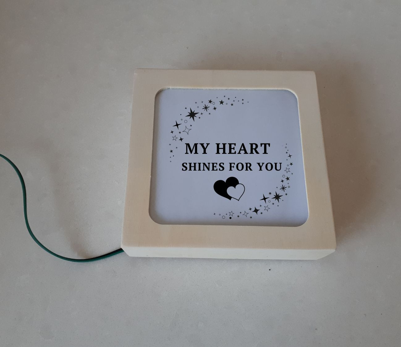 מנורת שולחן אווירה תאורת לילה מעץ טבעי – "ליבי זורח בשבילך"