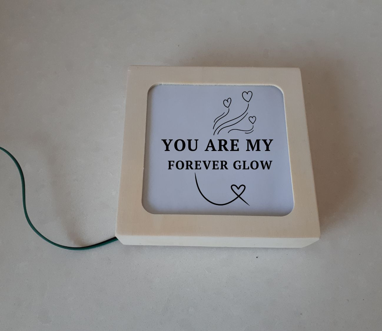 מנורת שולחן אווירה תאורת לילה מעץ טבעי – "את הזוהר הנצחי שלי"