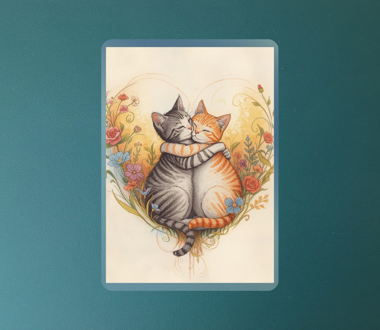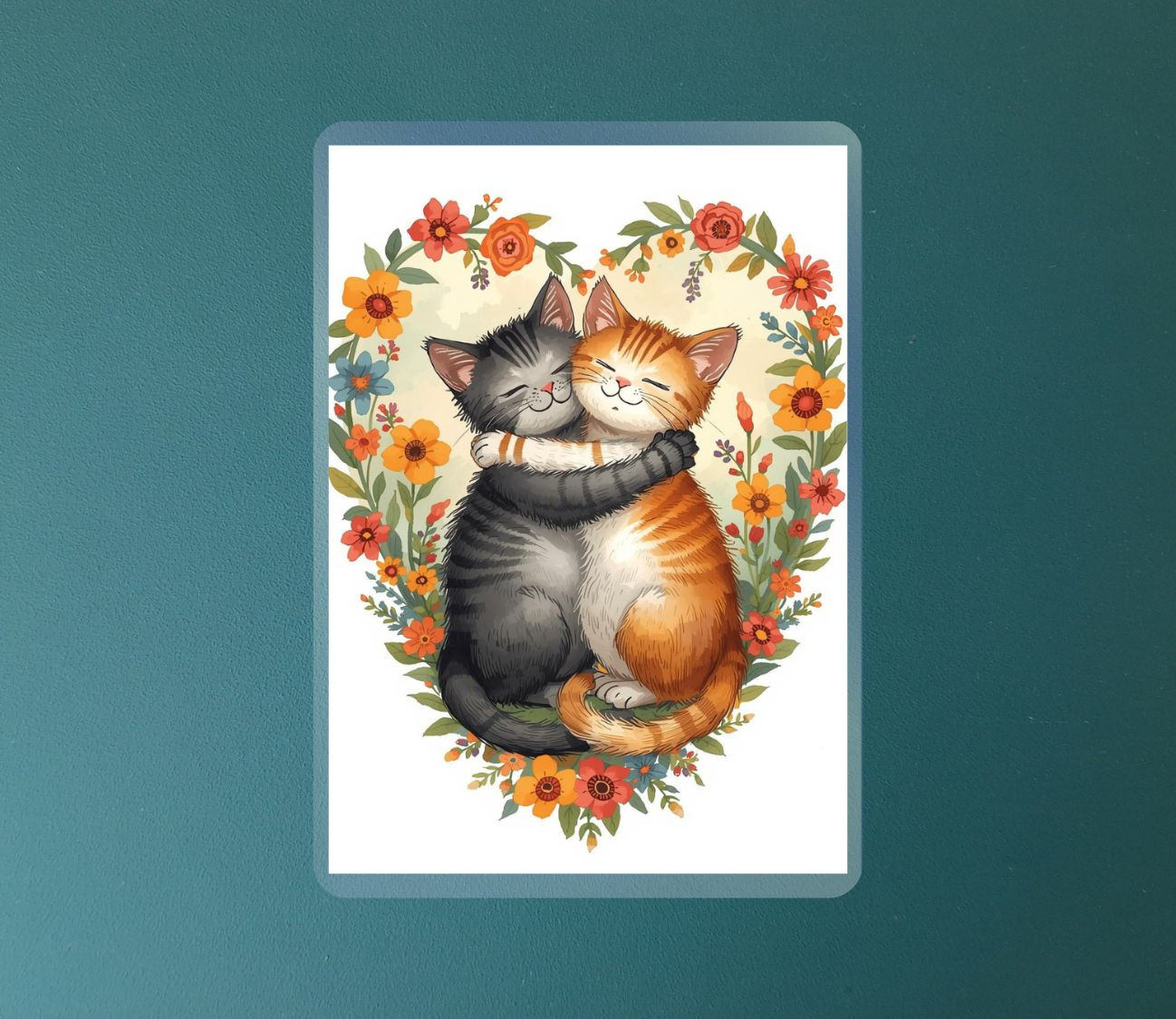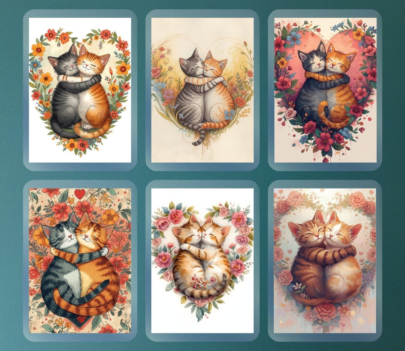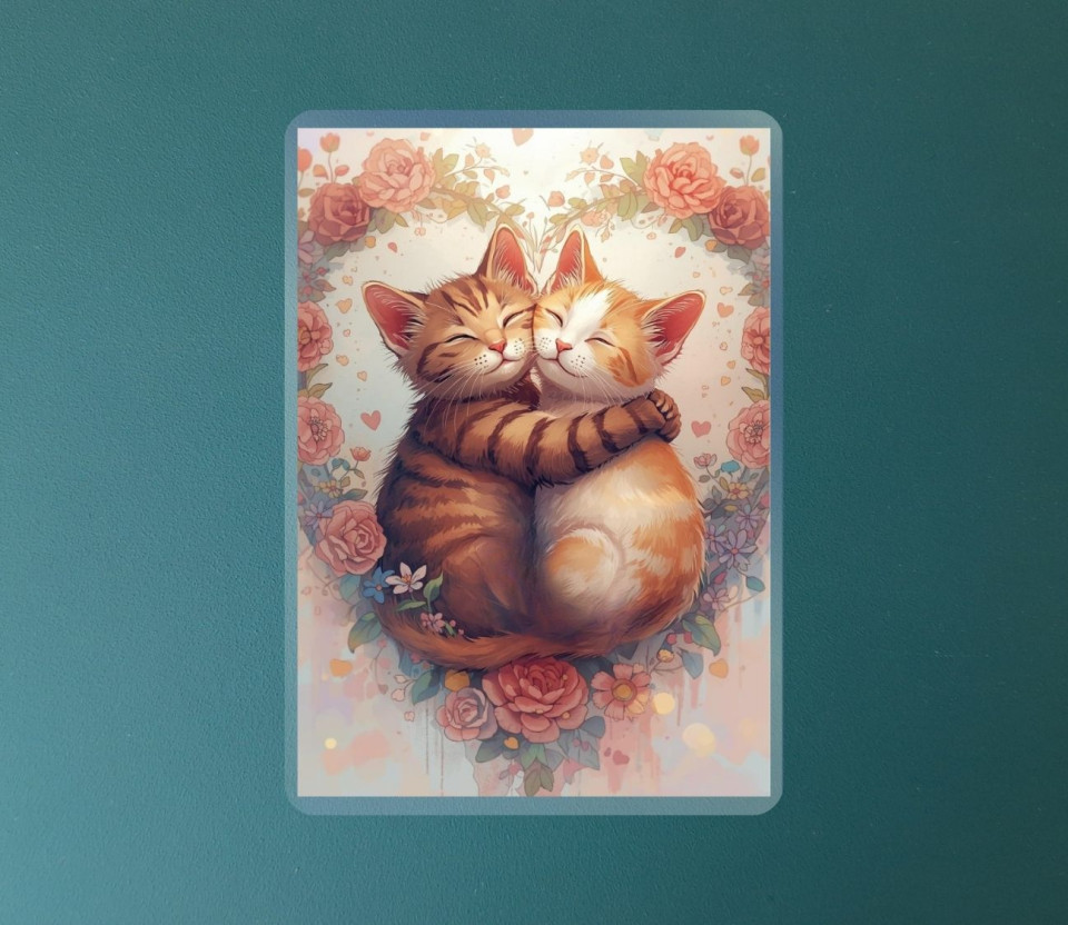 מארז 6 מגנטים קשיחים עם למינציה – חתולים מחובקים ברגעים מלאי אהבה וחמימות