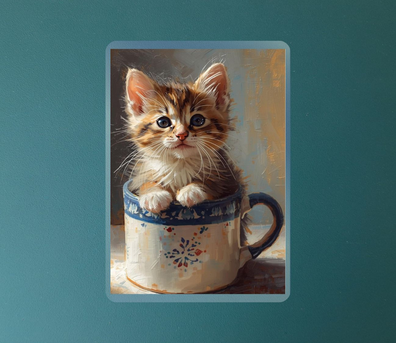 מארז 6 מגנטים קשיחים עם למינציה – חתלתולים בתוך ספלים בעיצוב מתוק וחמים