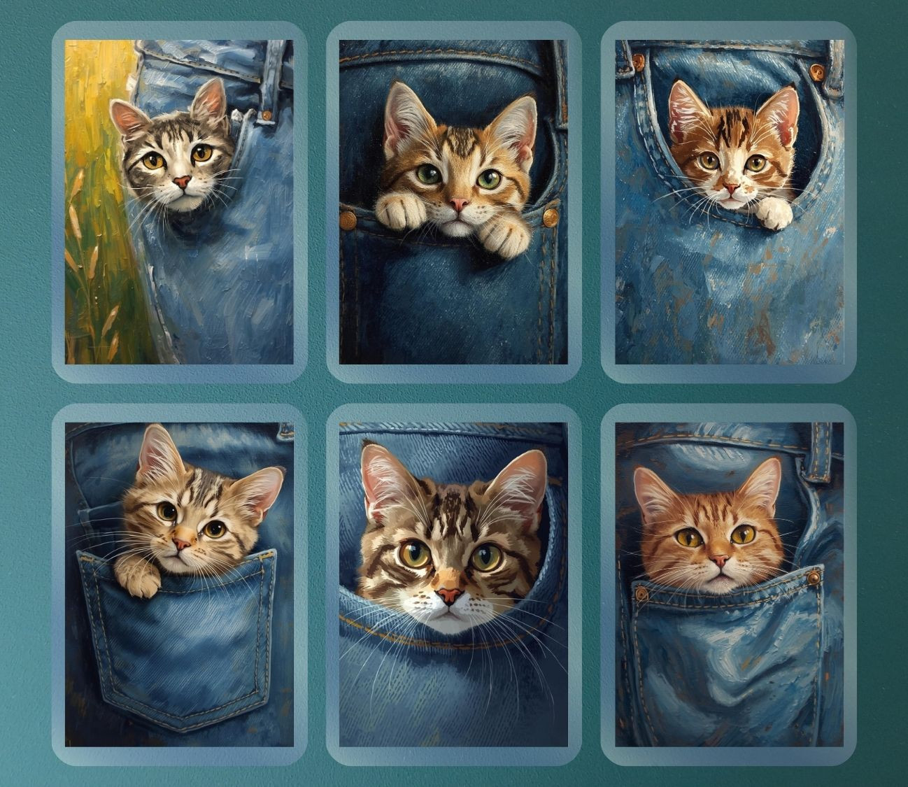 מארז 6 מגנטים קשיחים עם למינציה – חתולים מציצים מכיסי ג’ינס