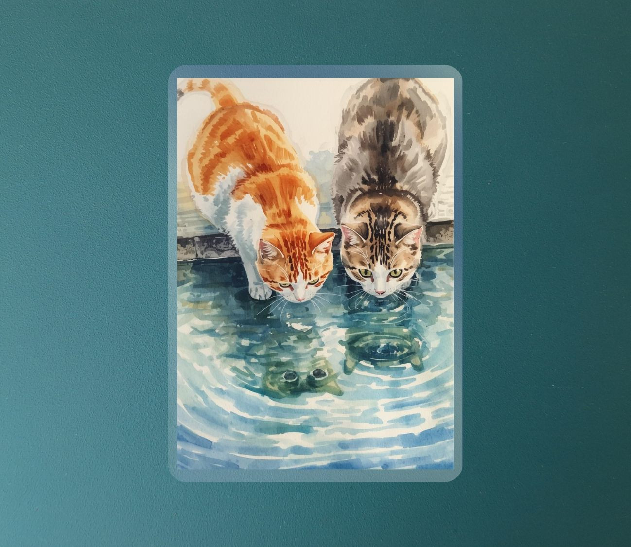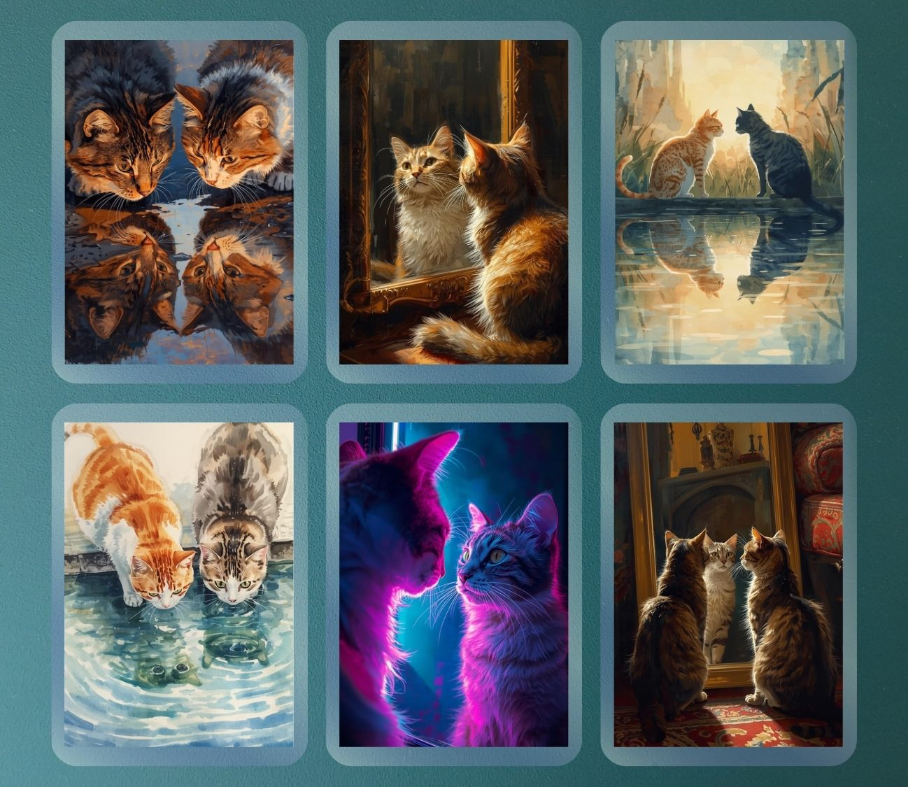 גלו את הקסם הקטן שבפרטים עם מארז 6 מגנטים חתולים – רגעי סקרנות מול מראה או מים.