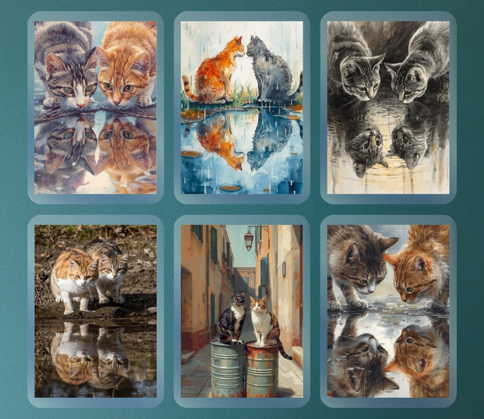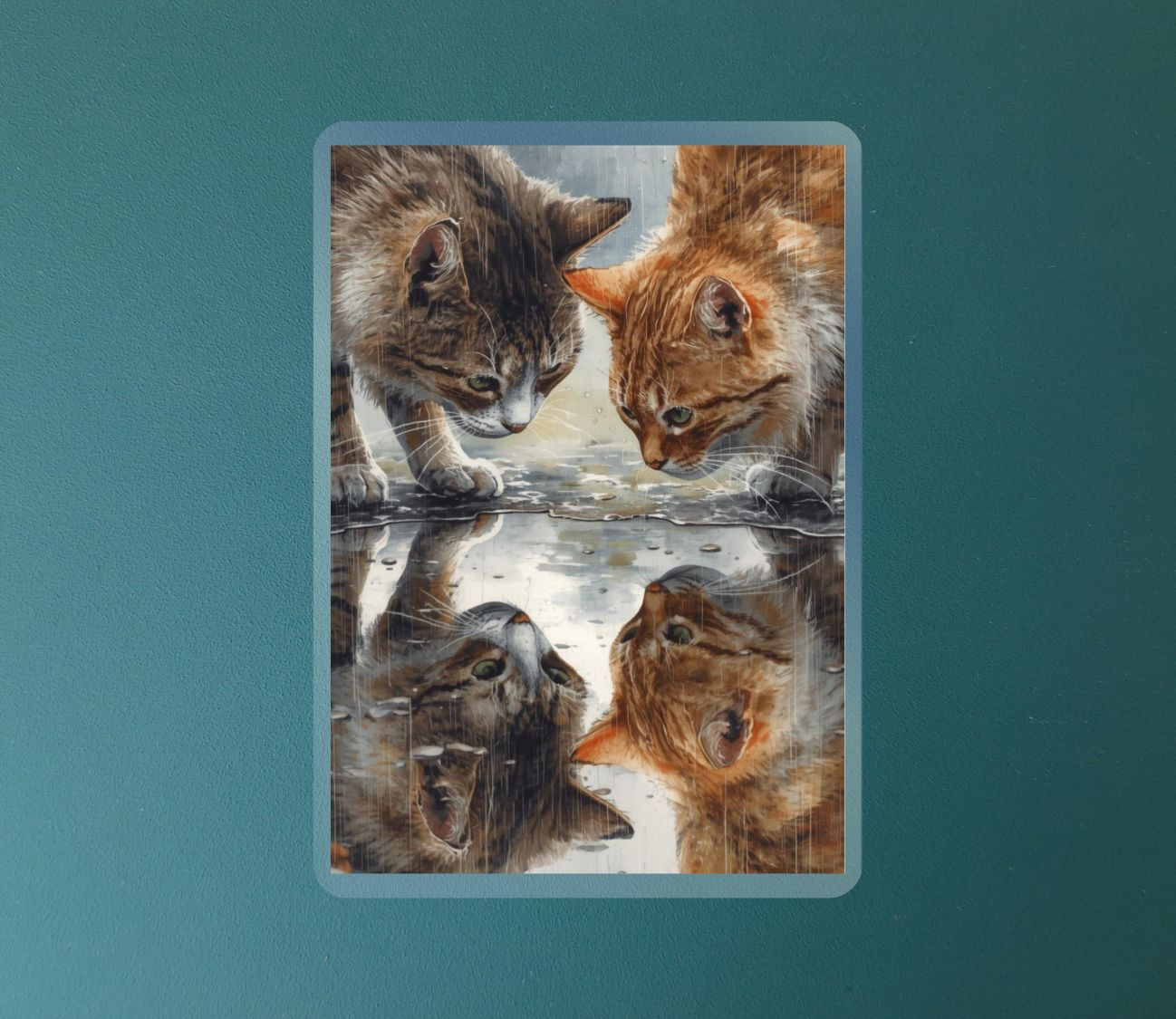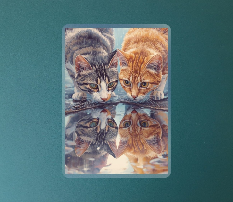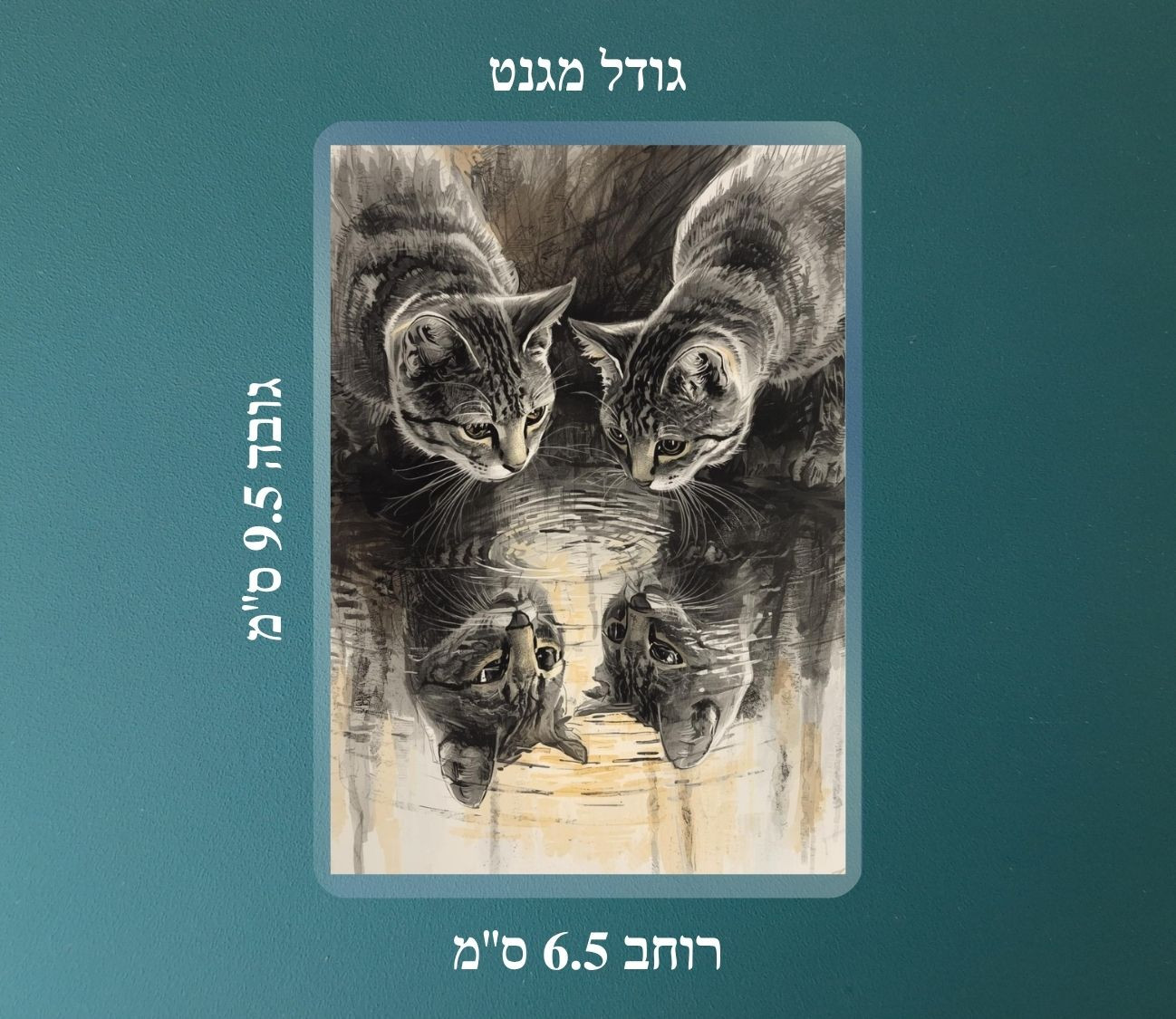 כל מגנט לוכד רגע קסום שבו החתול מביט במים, סקרני ושובב, כאילו מגלה את עצמו מחדש. מושלם להוסיף חן ואופי למקרר, לוח מודעות או כל משטח מגנטי אחר – בכל פינה קטנה בבית תחכה לכם חיוך קטן והרגע של קסם. סט מקסים לאוהבי חתולים, לאוהבי פרטים קטנים שממלאים את היום בשמחה.
