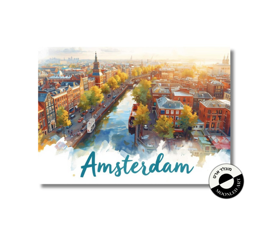 אמסטרדם - פוסטר איור אומנותי לתמונת קיר עם קסם אירופאי