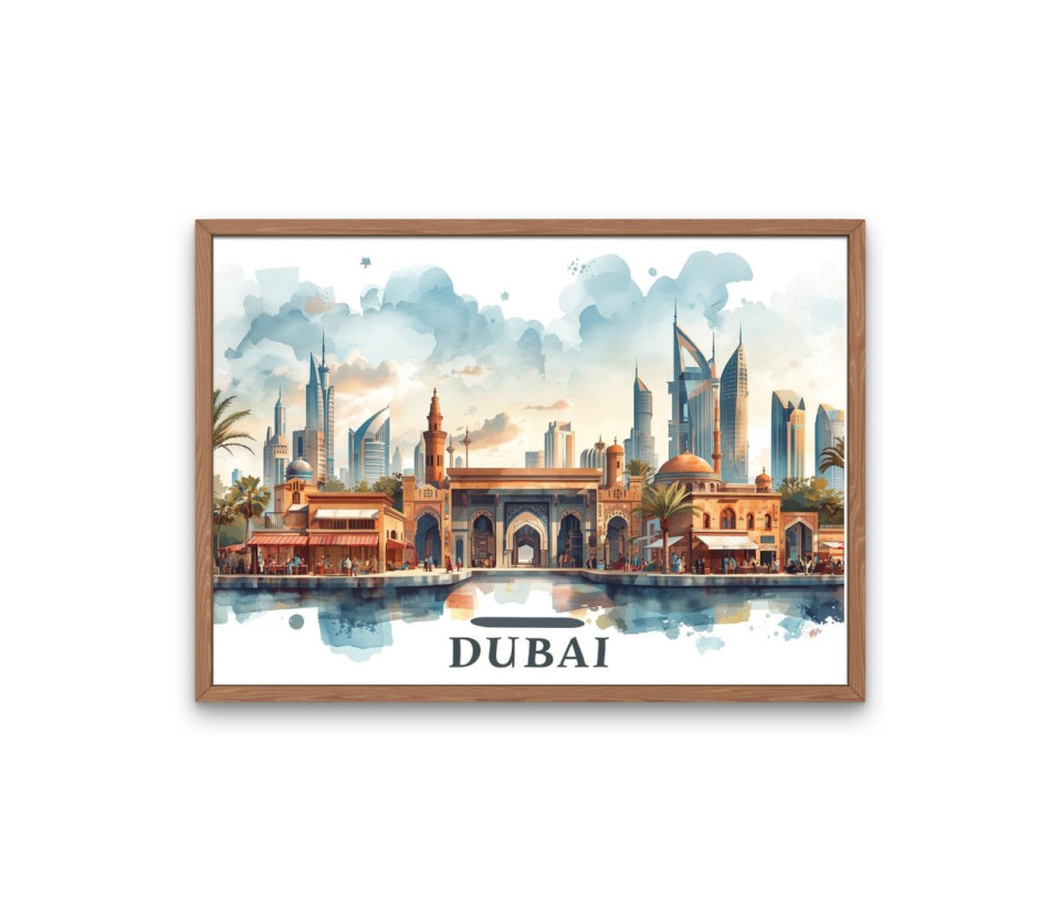 דובאי - פוסטר איור אומנותי של העיר דובאי