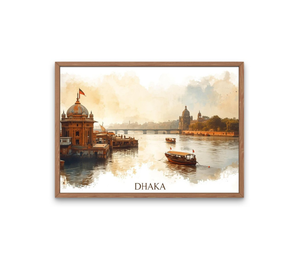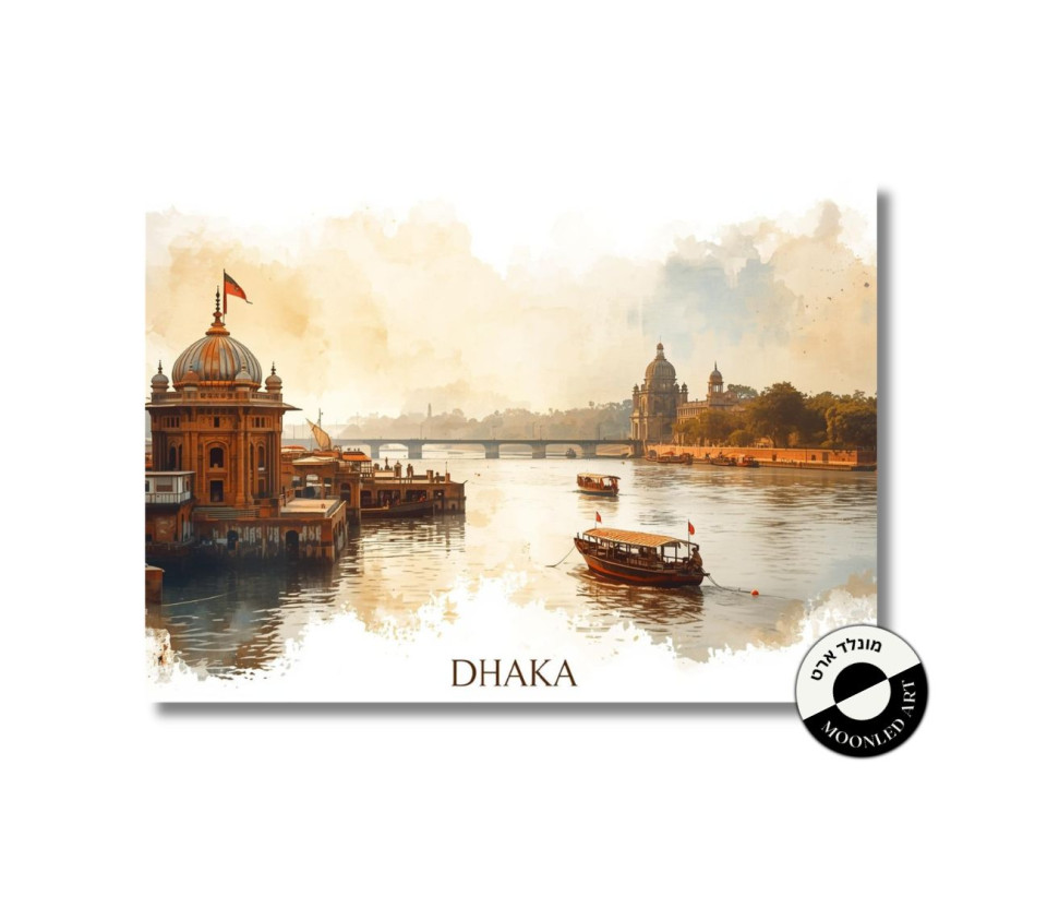 הכניסו אל הקיר שלכם ניחוח של תרבות רחוקה ומרתקת עם פוסטר איור מרהיב של העיר דאקה – בירת בנגלדש.