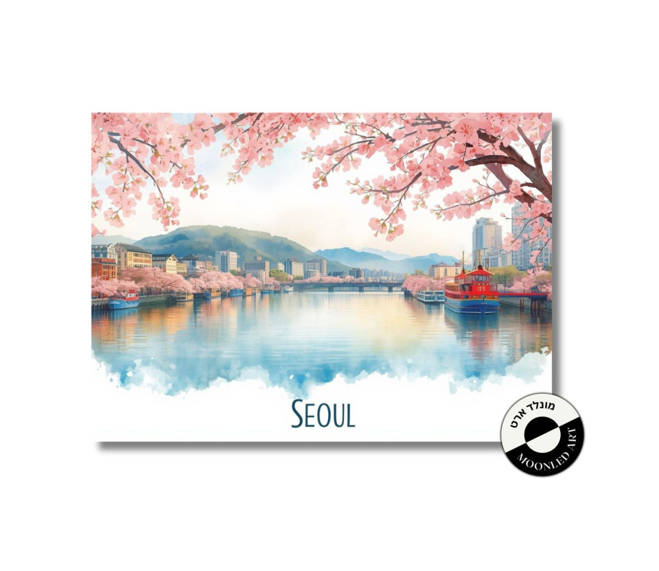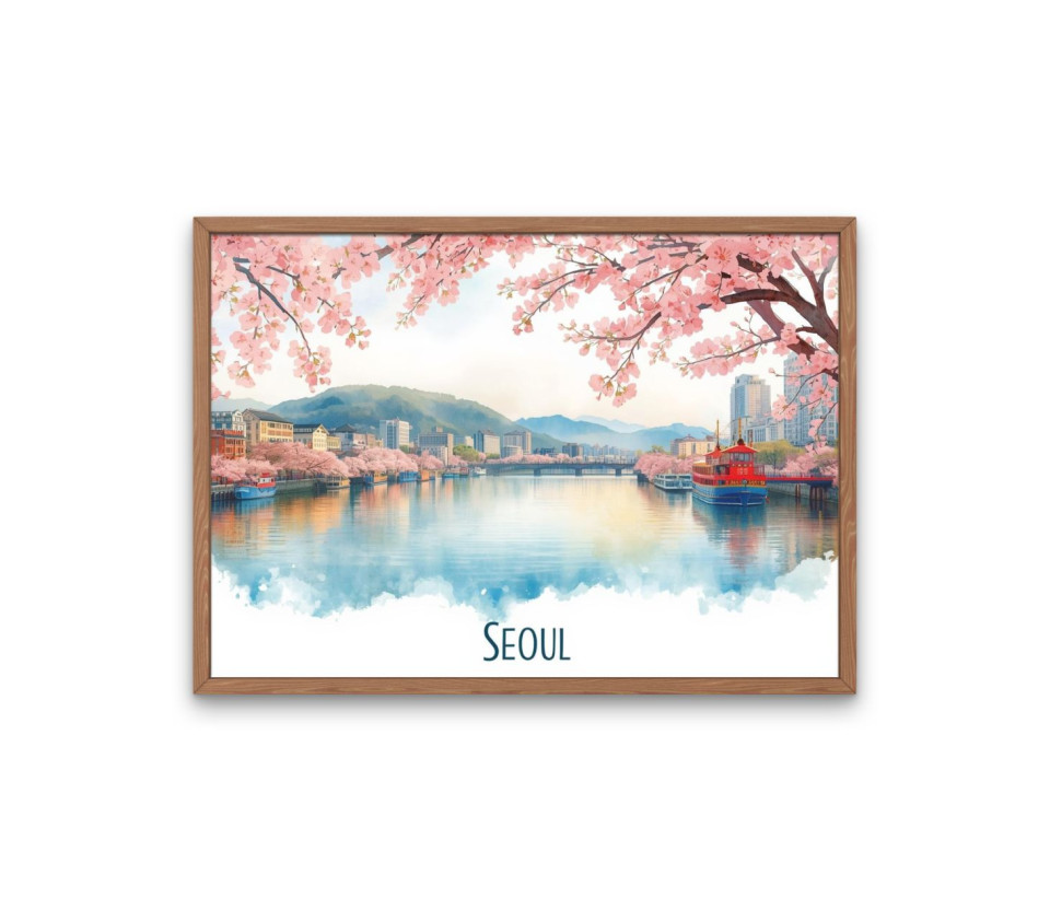 הכניסו לקיר שלכם אווירה קסומה של המזרח הרחוק עם פוסטר איור בהשראת העיר סיאול.