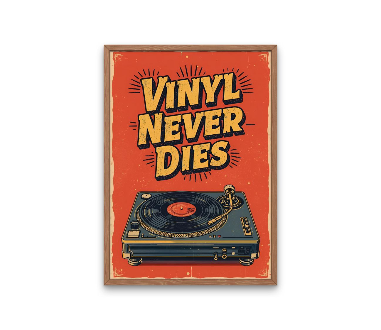 פוסטר - VINYL NEVER DIES - עיצוב נוסטלגי קסום