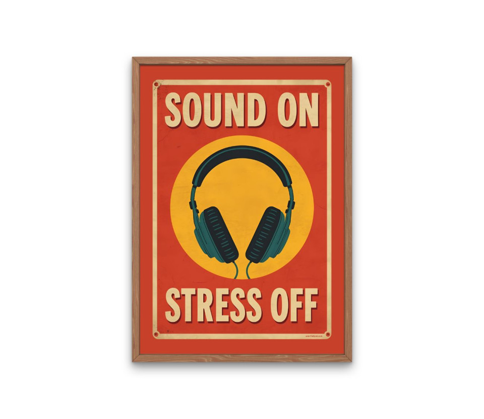 פוסטר - SOUND ON STRESS OFF - בעיצוב רטרו שנות 80 / 70