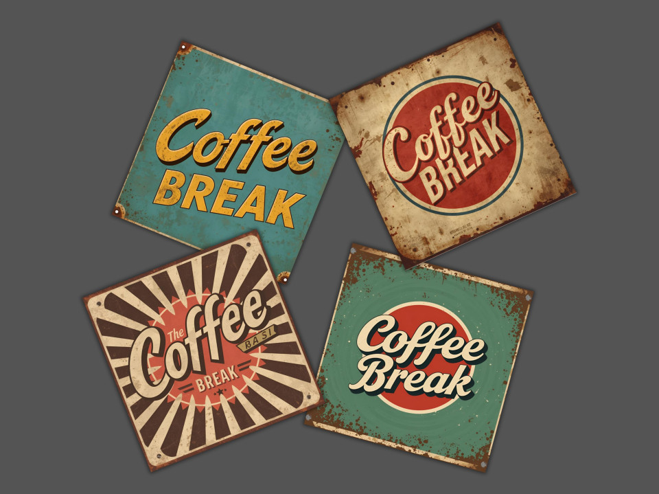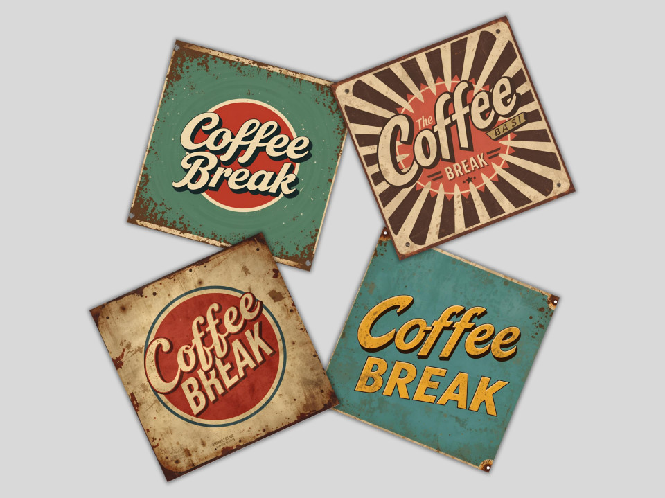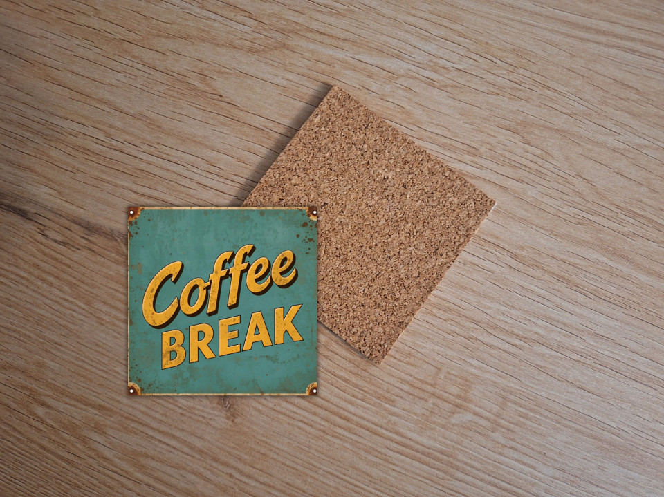 סט 4 תחתיות כוסות בעיצוב רטרו וינטג’ עם כיתוב “הפסקת קפה” מוסיף טאץ’ נוסטלגי ומלא סטייל לכל לגימה.