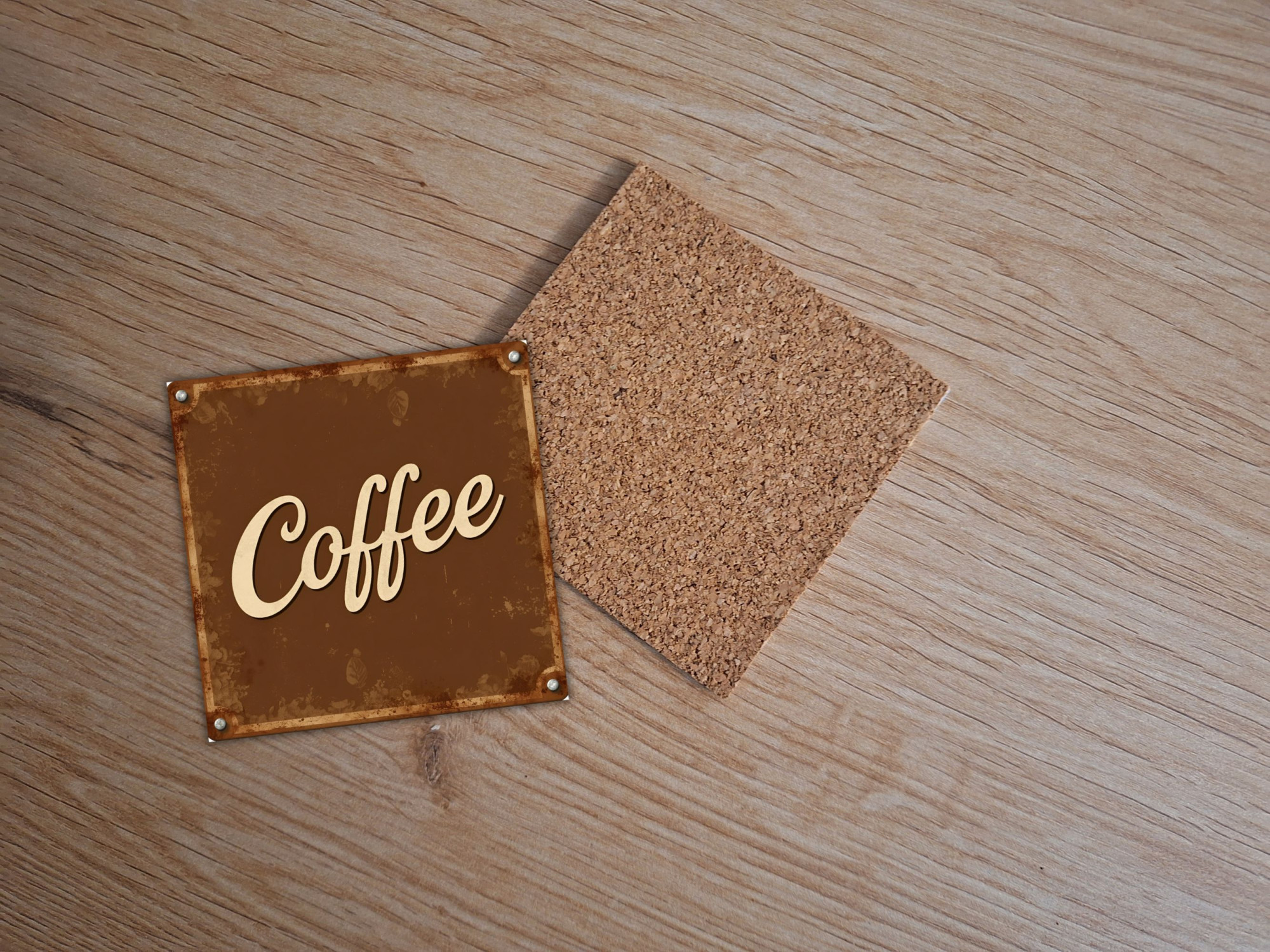 סט 4 תחתיות כוסות בעיצוב רטרו וינטג’ עם כיתובי קפה ייחודיים יעניקו לאירוח שלכם מראה חמים, טרנדי ומלא אופי.