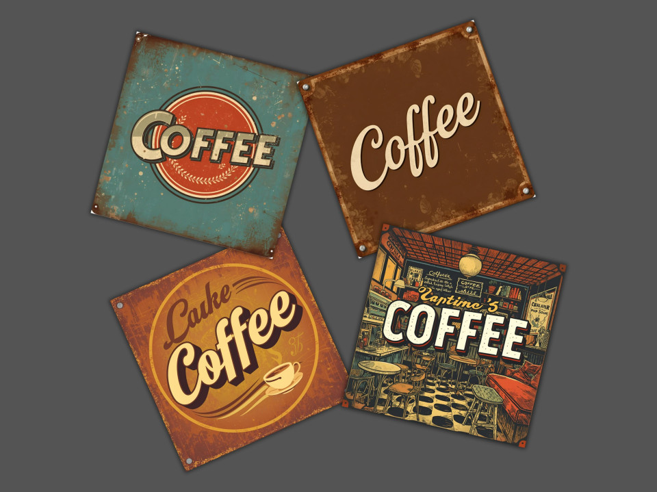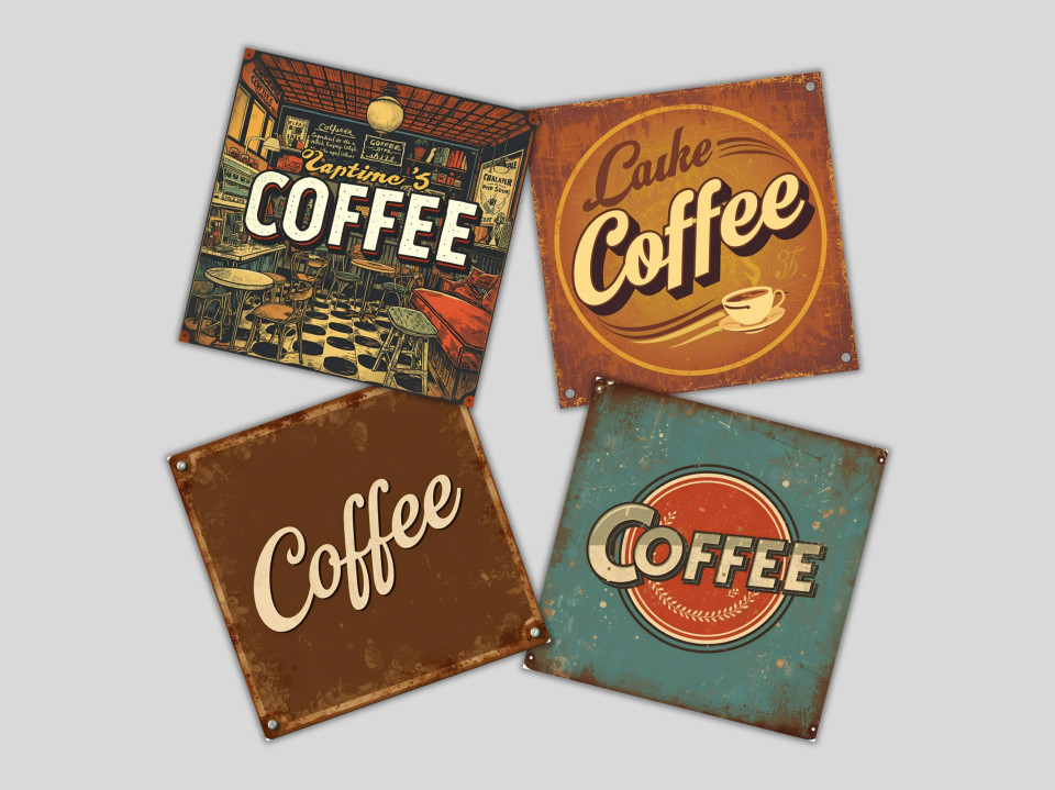 ✔️ עיצוב רטרו עם כיתובי קפה מעוררי השראה.