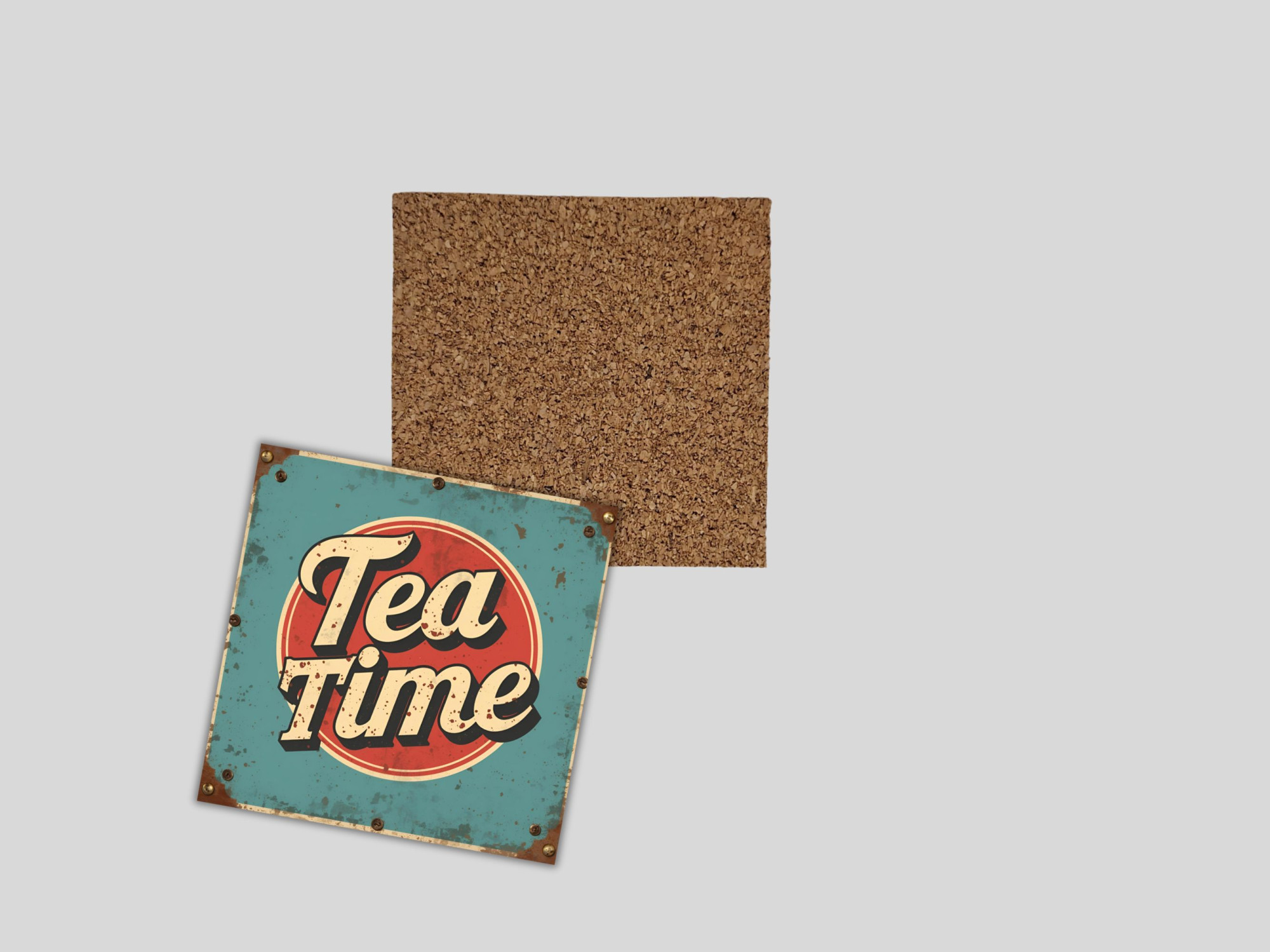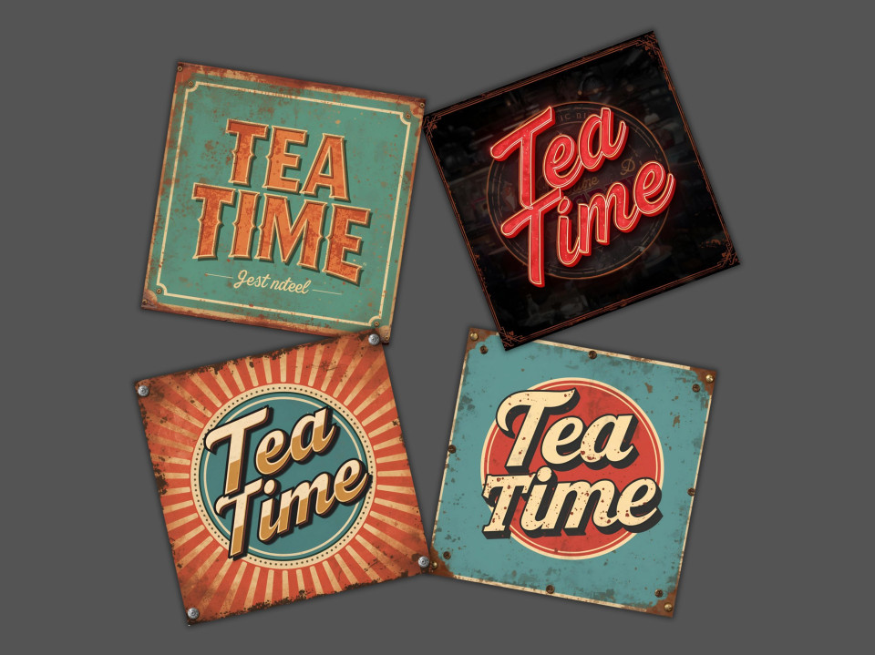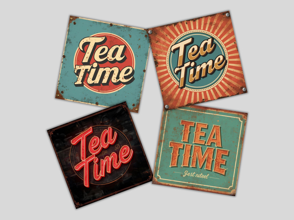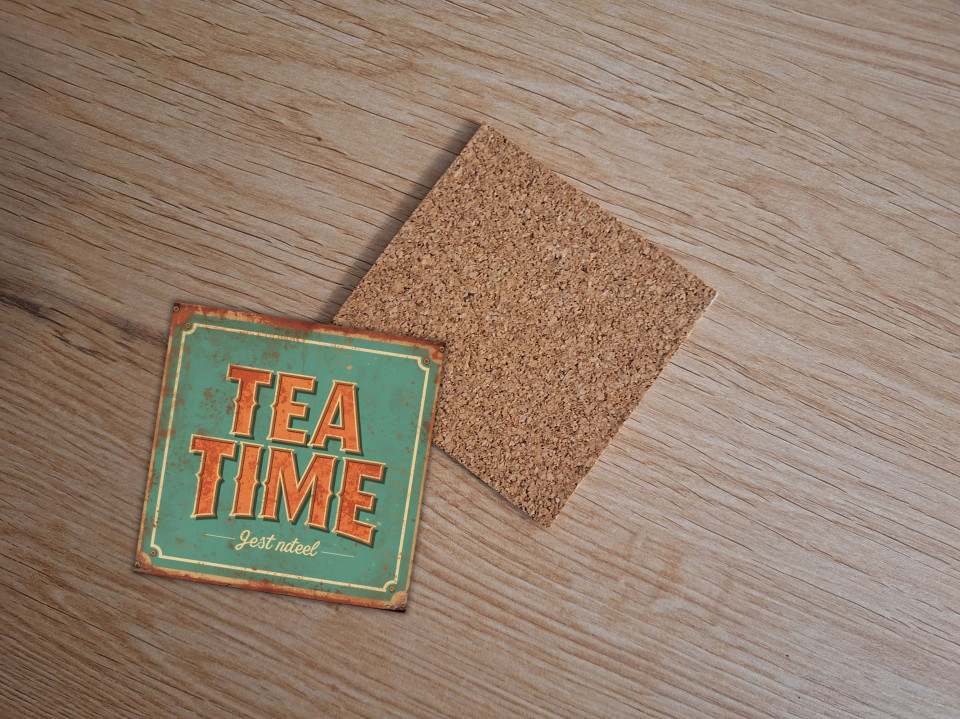 סט 4 תחתיות כוסות בעיצוב רטרו וינטג’ עם כיתוב “זמן תה” מעניקים פינה מיוחדת לשולחן שלכם, בשילוב אווירה נוסטלגית ואלגנטית.