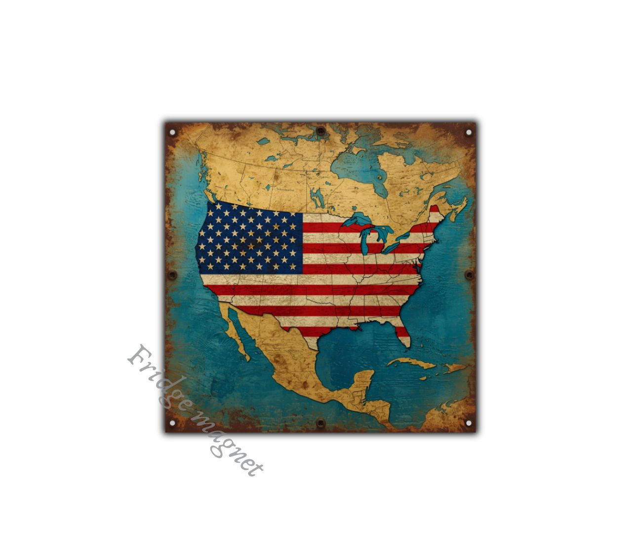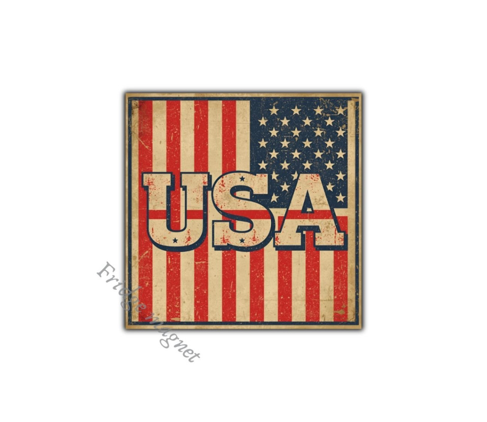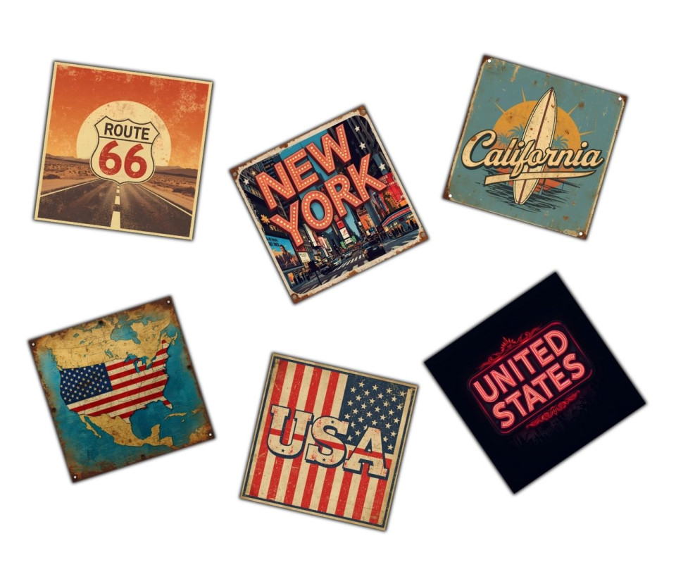 ארצות הברית - סט 6 מגנטים קשיחים עם למינציה סגנון רטרו וינטג'