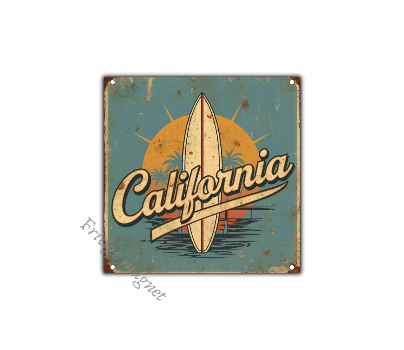 סט 6 מגנטים קשיחים עם למינציה בעיצוב רטרו–וינטג’ של ארצות הברית, קליפורניה, ניו יורק ישדרגו כל מקרר או לוח מתכת!