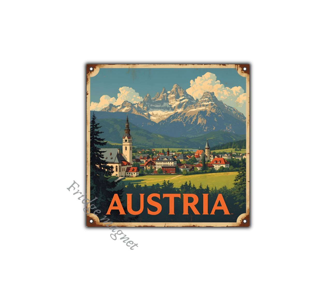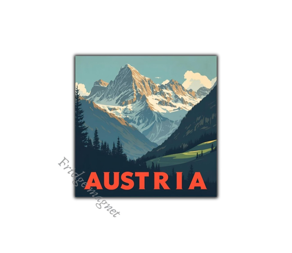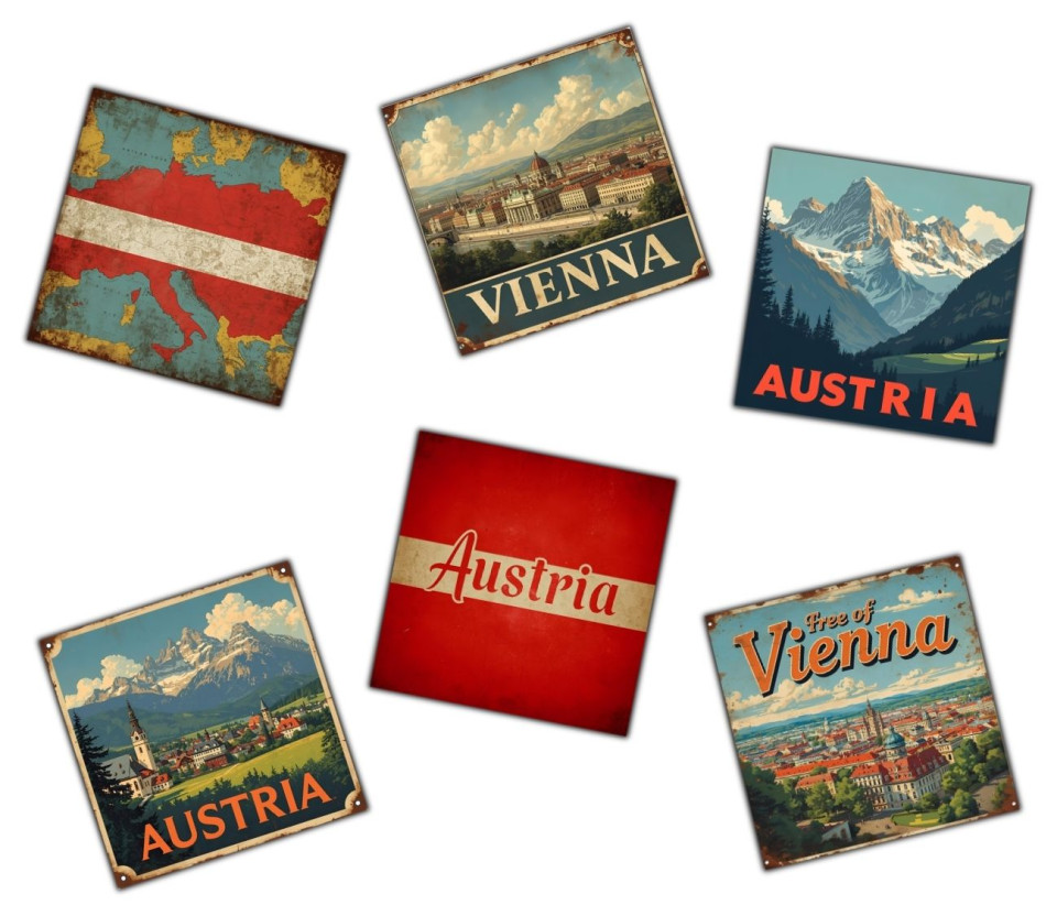 אוסטריה - סט 6 מגנטים קשיחים עם למינציה סגנון רטרו וינטג'