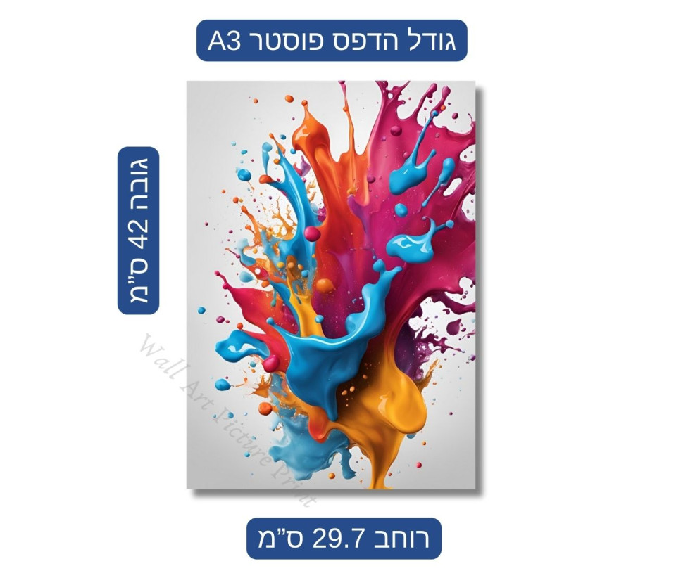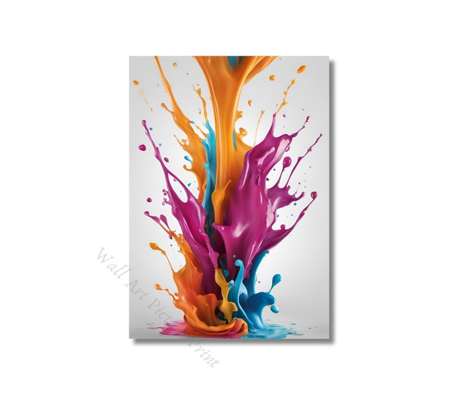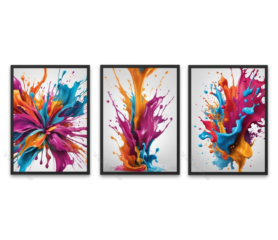 3 הדפסים פוסטרים תמונות קיר צבעוניים בעיצוב אמנותי עכשווי של התזות צבע מרהיבות