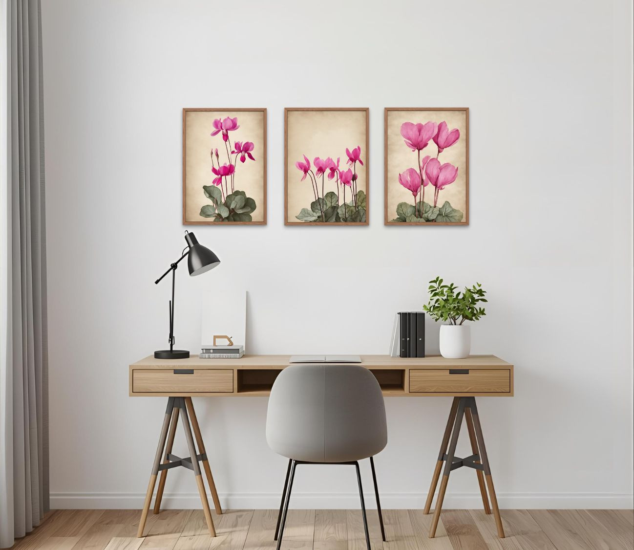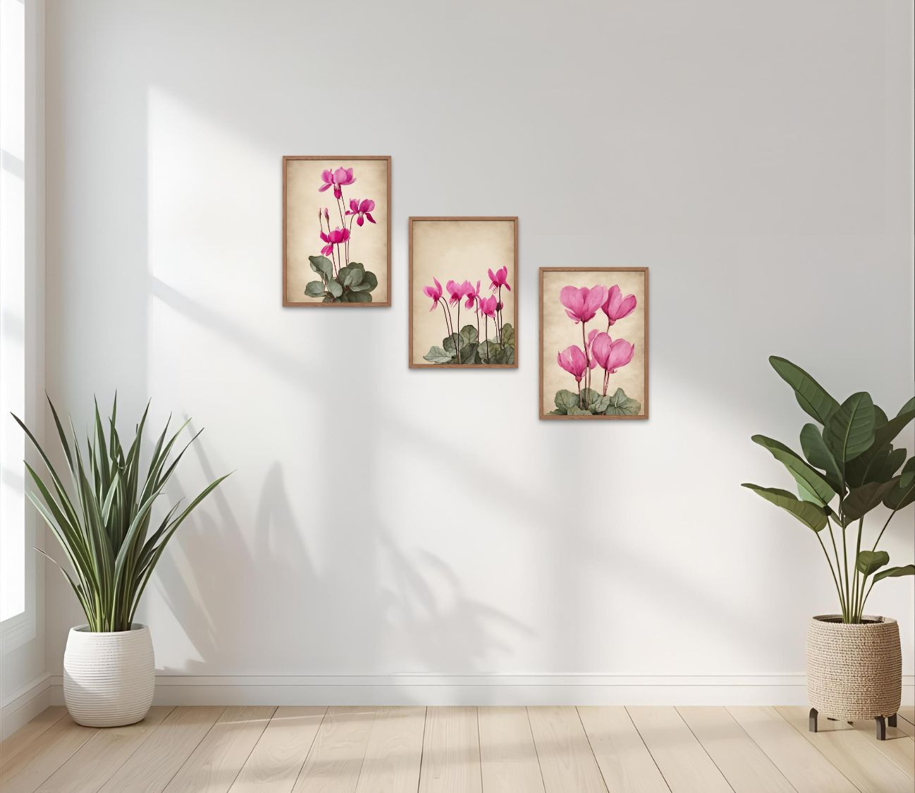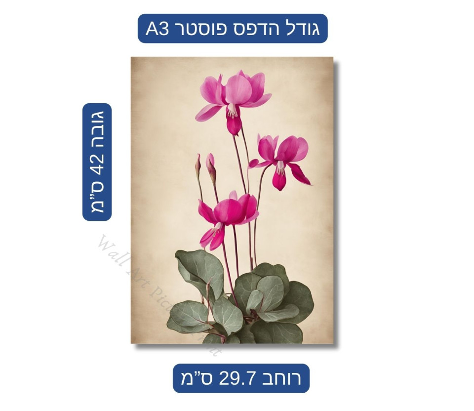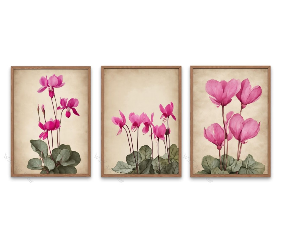 סט 3 הדפסים מרהיבים של רקפות – שילוב מושלם של טבע ואומנות לעיצוב הבית.